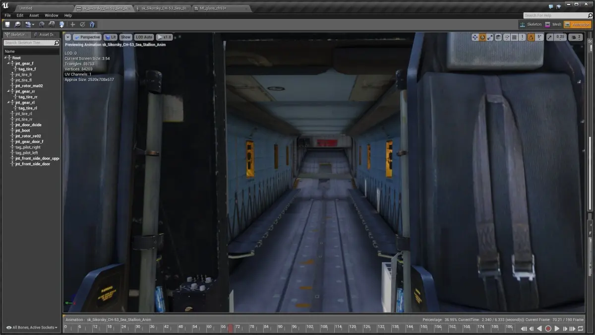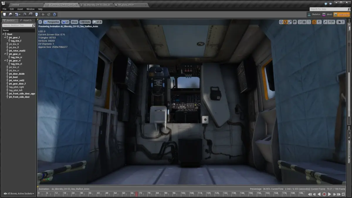 All of the movable are rigged and animated, like blades (advanced composite rotor) rotation and fold, loading ramp open / close, refueling probe stretching, wing deice rotating etc.