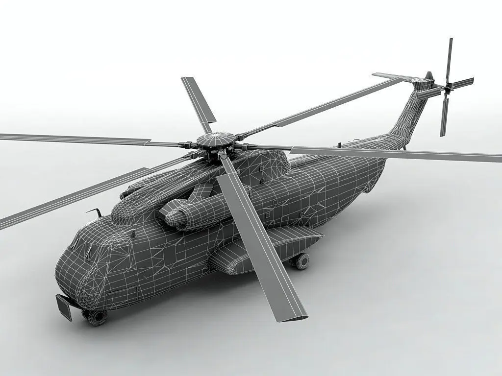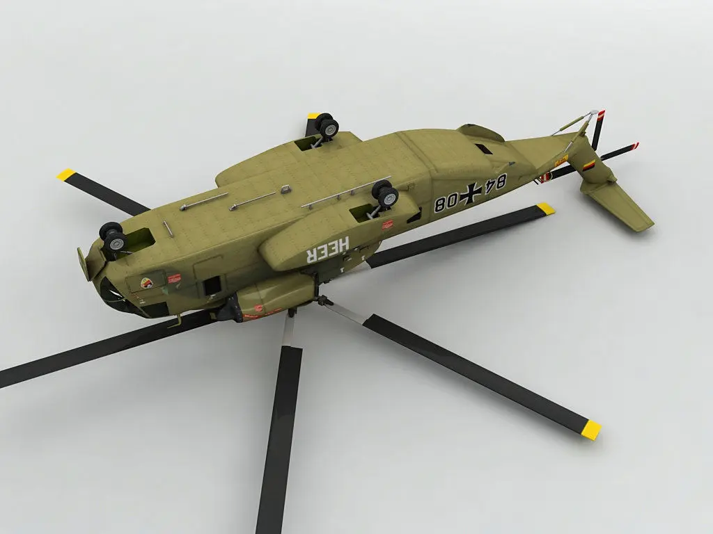 Sikorsky CH-53G Helicopter HEER (With Simple Cockpit) This is a low detail model designed to scale from blueprints. Although all the major dimensions are correct (length, height, width, wingspan etc.) every exact arc and measurement is not taken into account for engineering purposes. This model is best suited for entertainment and multimedia.