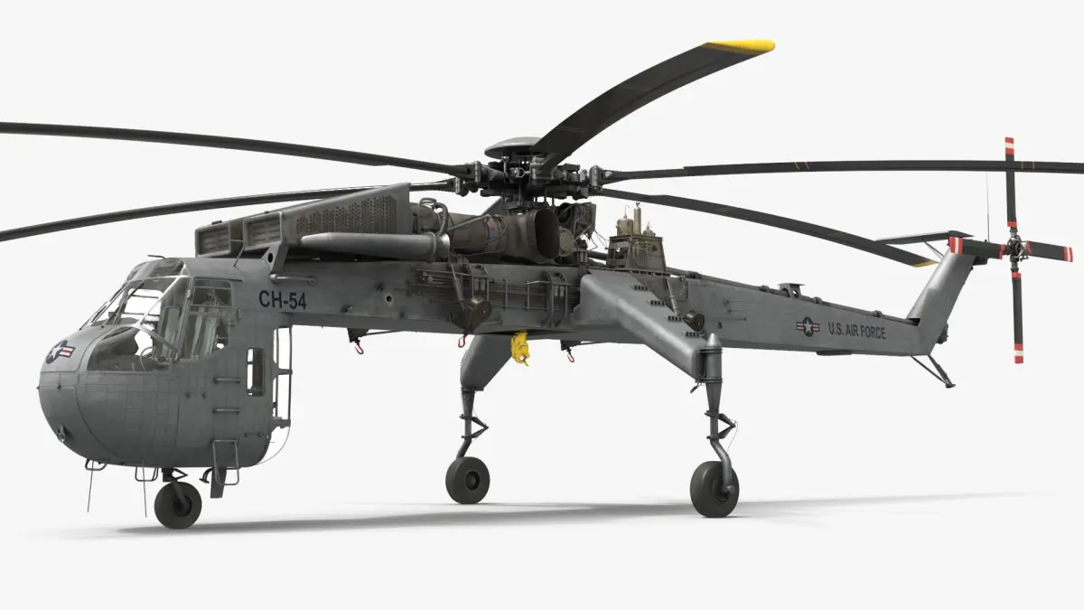 Sikorsky CH-54 Tarhe Helicopter is a 3d model of a heavy-lift cargo helicopter, specifically engineered for carrying large loads and equipment.