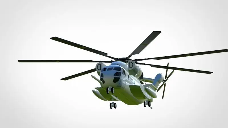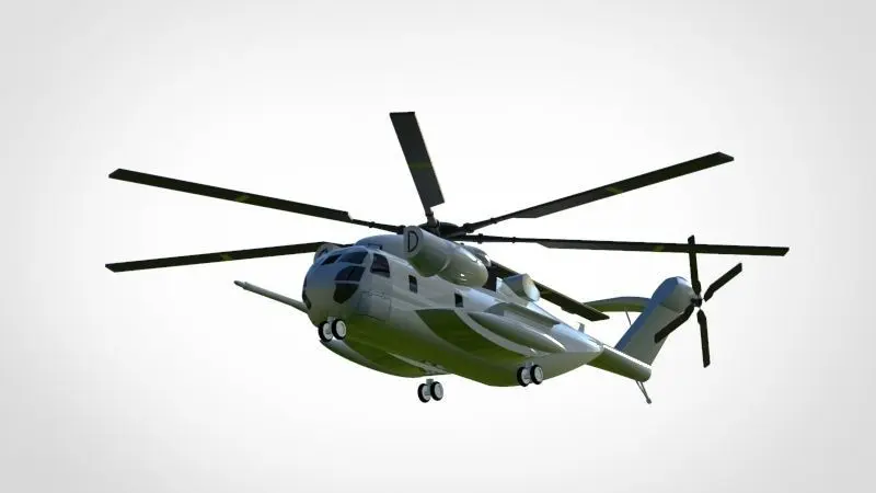 The Sikorsky CH-53E Super Stallion is a heavy-lift helicopter operated by the United States military. As the Sikorsky S-80, it was developed from the CH-53 Sea Stallion, mainly by adding a third engine, adding a seventh blade to the main rotor, and canting the tail rotor 20°. Wikipedia