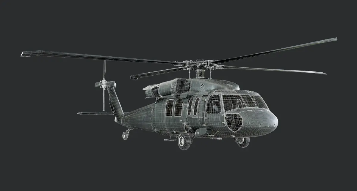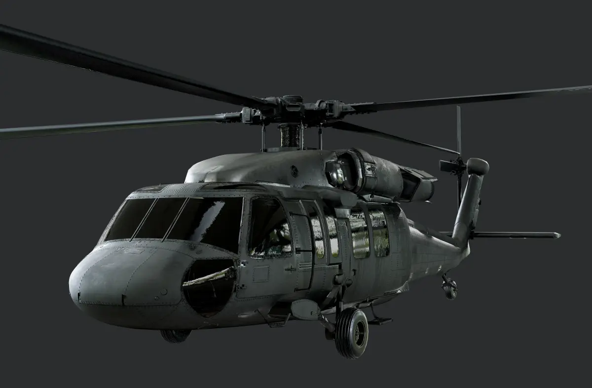 Model of a Sikorsky UH60 Black Hawk Helicopter, exterior and interior is modeled and textured. Unwrapped with PBR textures. OBJ files and FBX files. Ready for use in any 3D software or game engine. Unwrapped: Non- Overlapping
