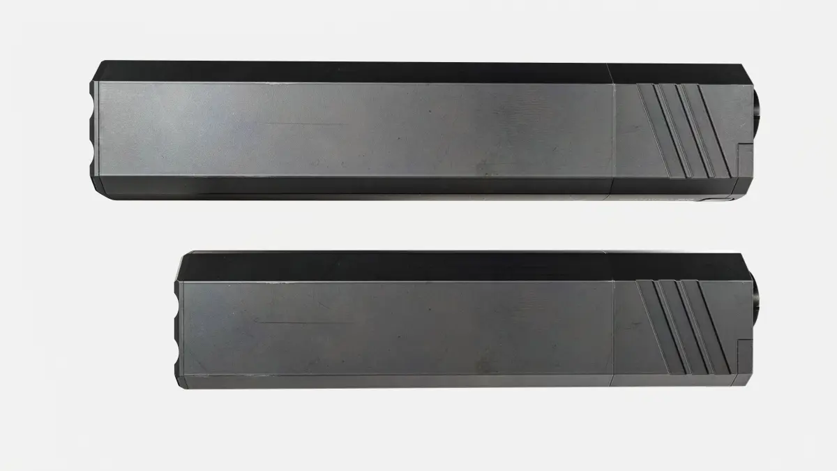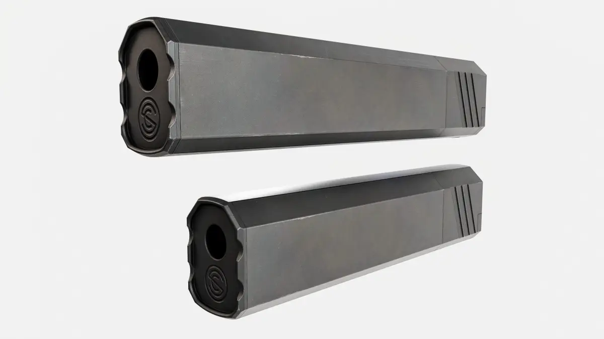 Game ready model of a SilencerCo Osprey 2.0 Handgun Suppressor. Both 9mm and 45acp variants are included.