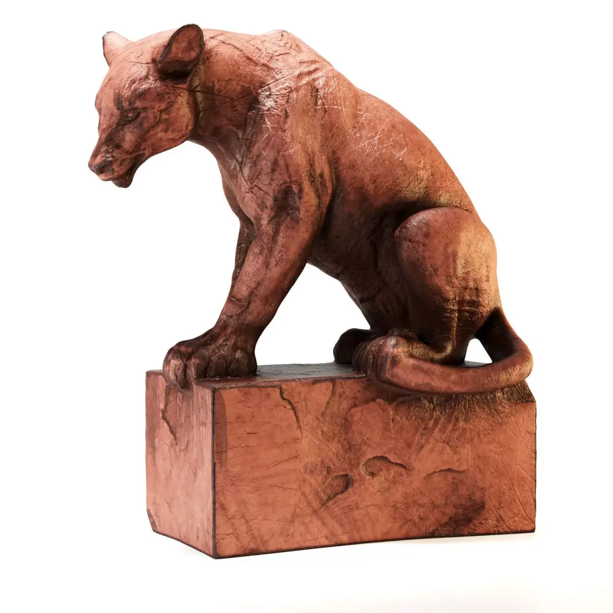 A handcrafted clay tiger statue, sculpted with raw strength and calm precision. The form captures a moment of silent vigilance - muscles tense beneath the rough, earthen surface, as if the beast were carved straight from nature itself. Its weathered texture and reddish clay tone evoke the timeless beauty of handmade art, grounded and powerful. With 40,000 polygons for smooth, natural contours and 4K textures that highlight every fine detail, this model is made for Corona and V-Ray Renderers, perfect for close-up renders or interior scenes rich with warmth and realism.