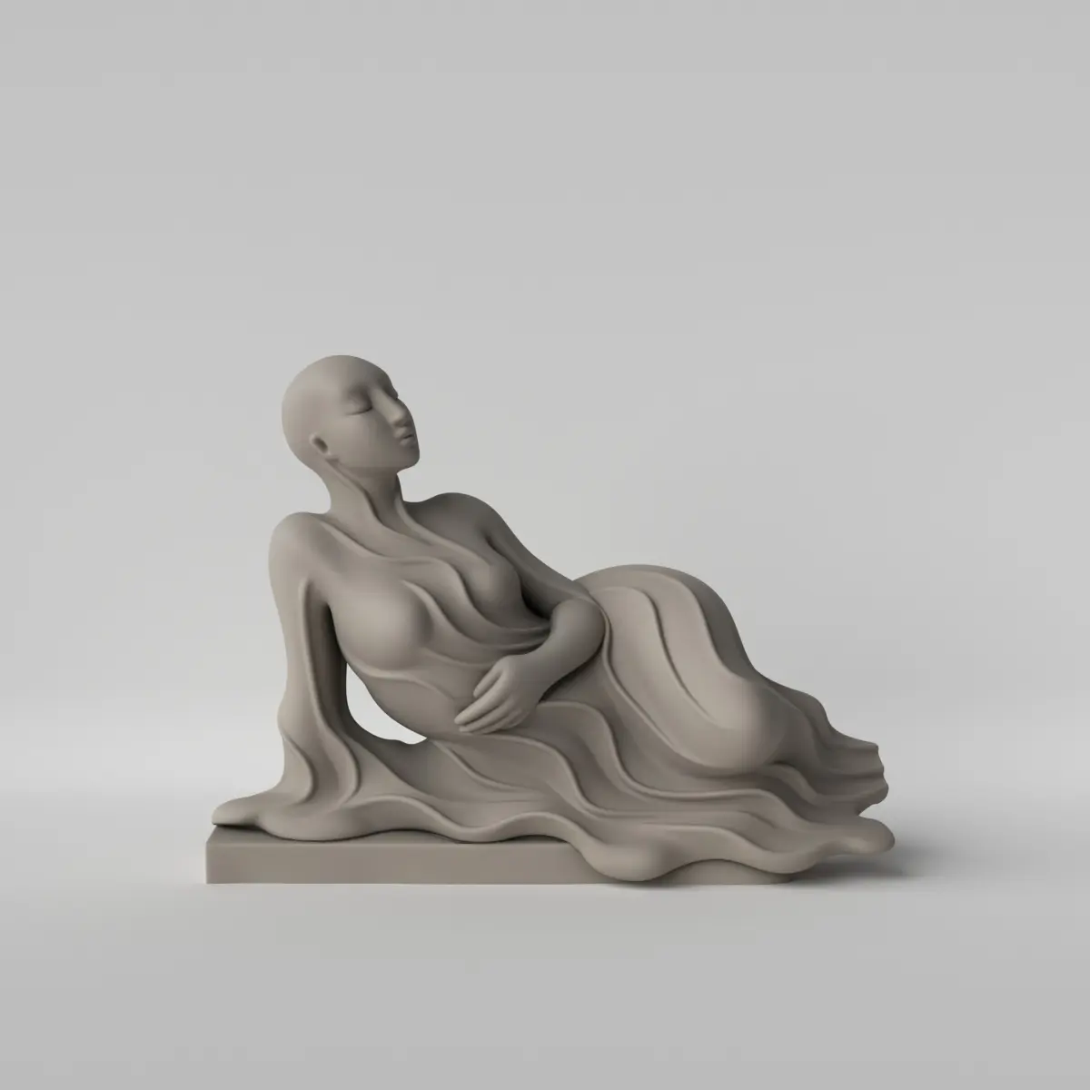 A minimalist sculpture portraying the smooth silhouette of a woman lying down in a state of rest and contemplation. Its fluid and continuous lines convey peace, beauty, and harmony. Perfect for those looking for a sophisticated decorative piece that blends elegance with simplicity. Ideal for modern spaces, studios, offices, or as an artistic gift. Optimized for 3D printing.