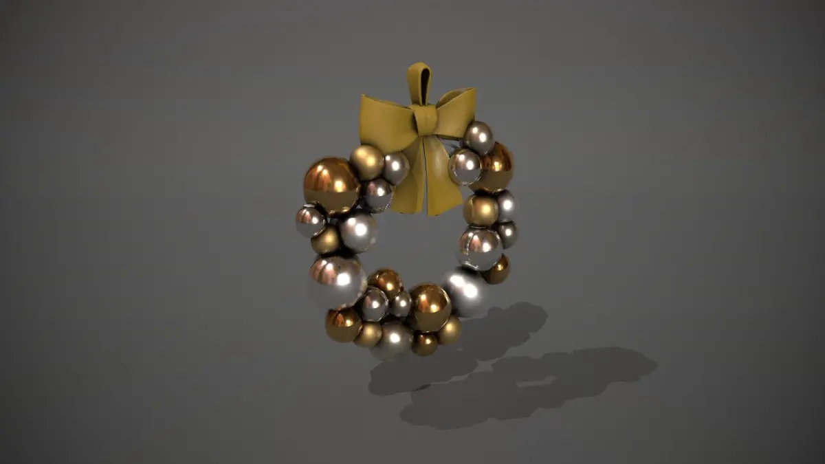 Polygons: 4292 Verts: 2232. Origin is set to the centre of the loop attached to the top of the wreath, and centre of the world.