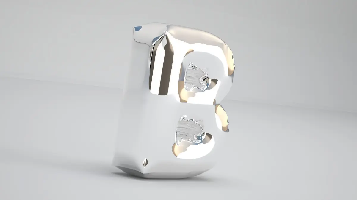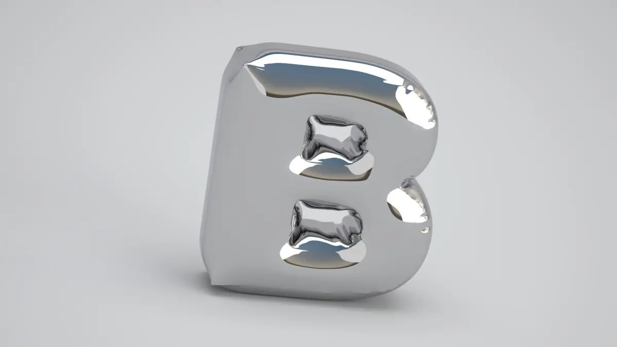 Realistic 3D Model OF Balloon B Alphabet Silver