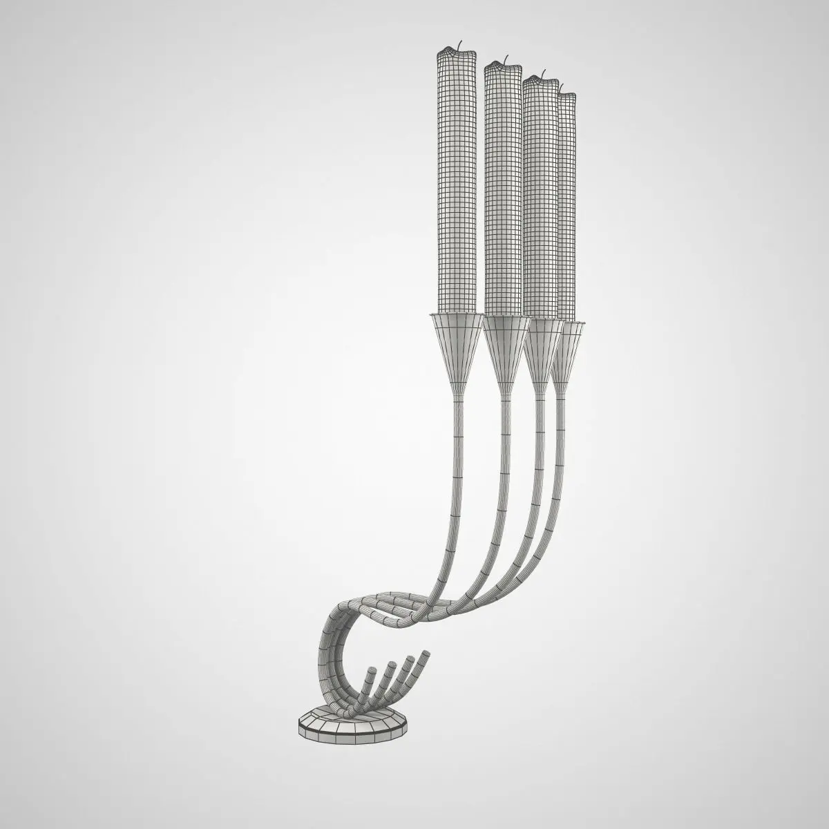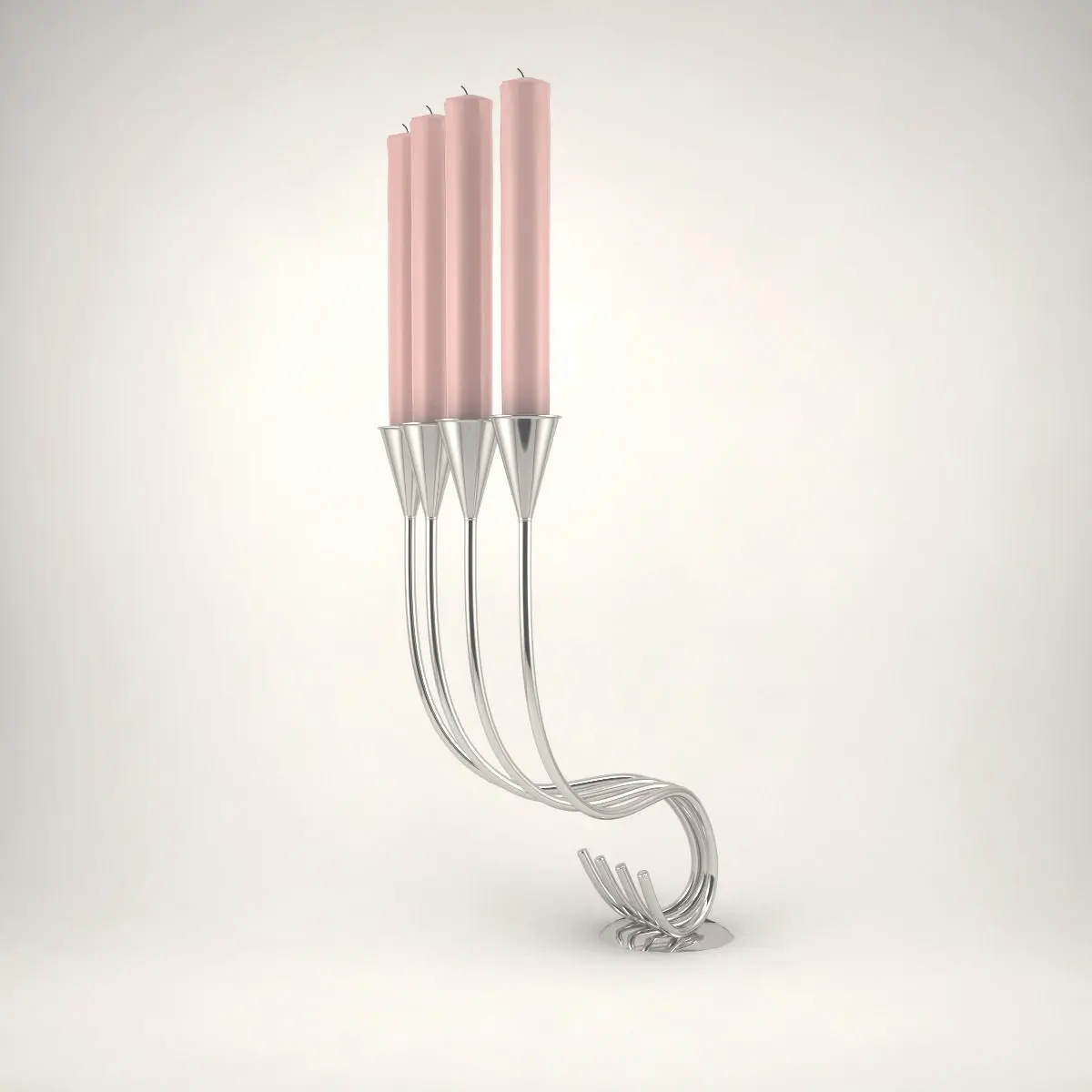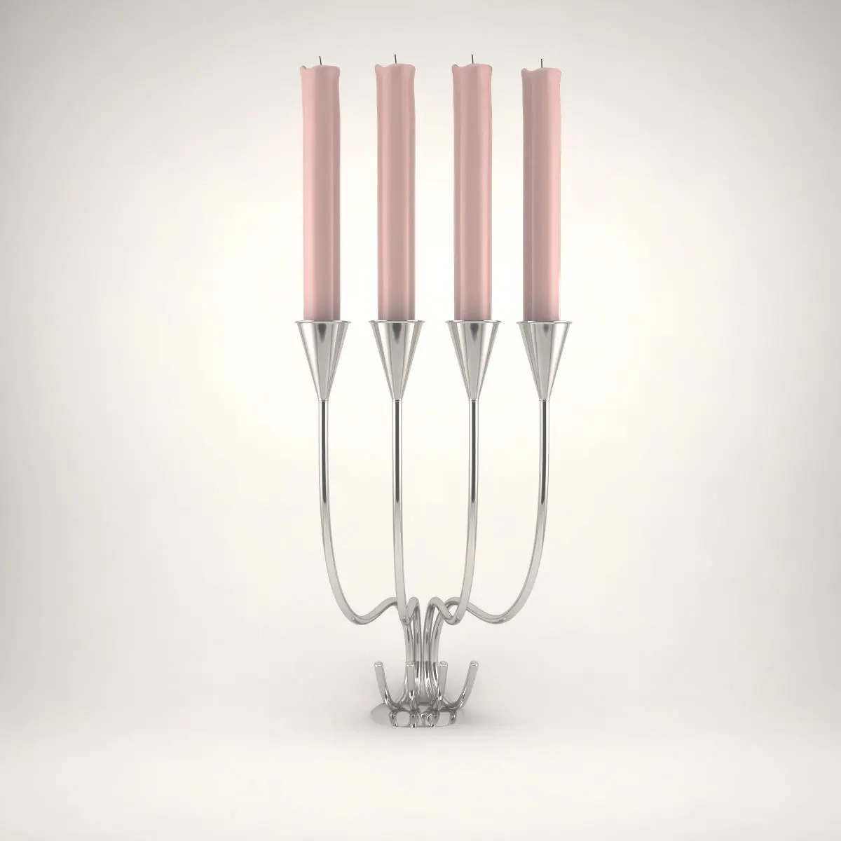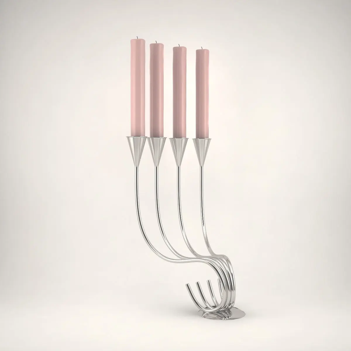 A silver candlestick with wax candles.