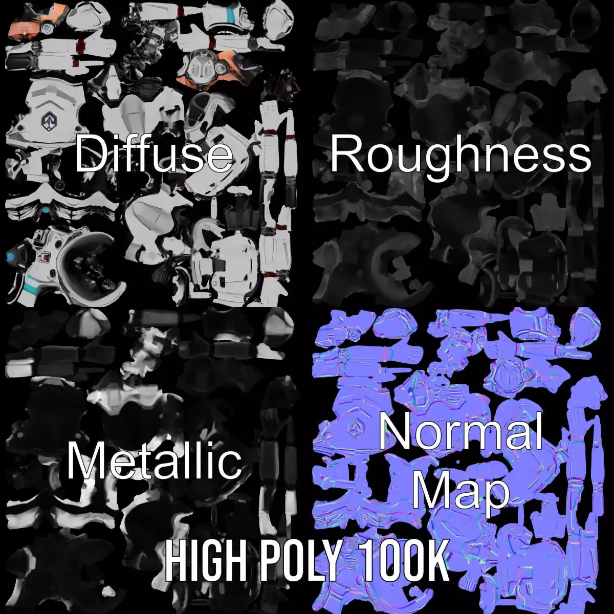 The Silver Cyber Armor model pack features a futuristic and sleek armor design perfect for sci-fi projects. With its polished metallic finish and intricate details, it’s ideal for character design in games, films, and simulations. Each model has 3 levels of detail: low-poly (1000 triangles for mobile), middle-poly (10,000 triangles for environment), and high-poly (100,000 triangles), which allows for the use of this model in production rendering (such as 3ds Max, Maya, Cinema4D, Blender, Vray/Corona/Cycles and all others), game engines (Unity and Unreal compatible), and interactive presentations, providing a choice of detail based on the LOD System principle. The model's textures are PBR, Diffuse, NormalMap, and reflection/roughness/metallic, which are suitable for any modern rendering engine. All models are accurately unwrapped and have no overlapping UVs. All textures are 4096*4096 in size. Please like and leave a comment for the model if you enjoyed it.