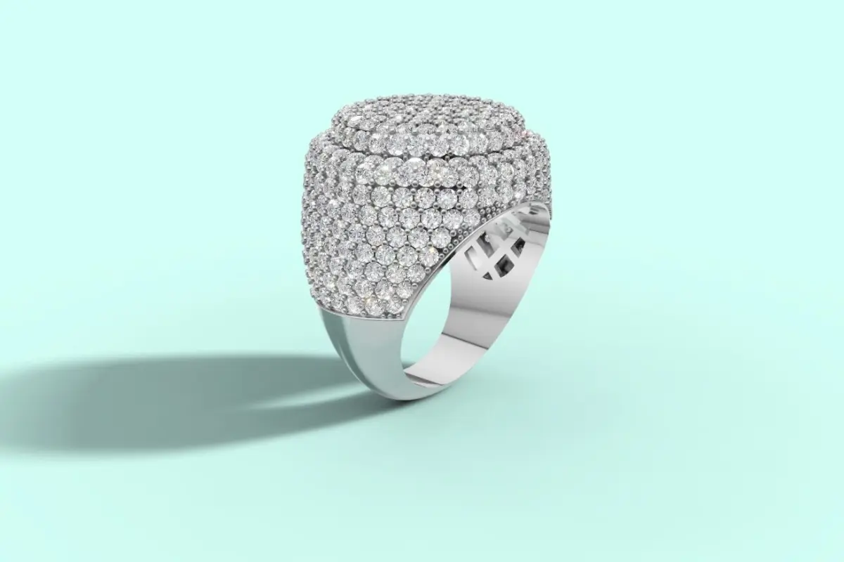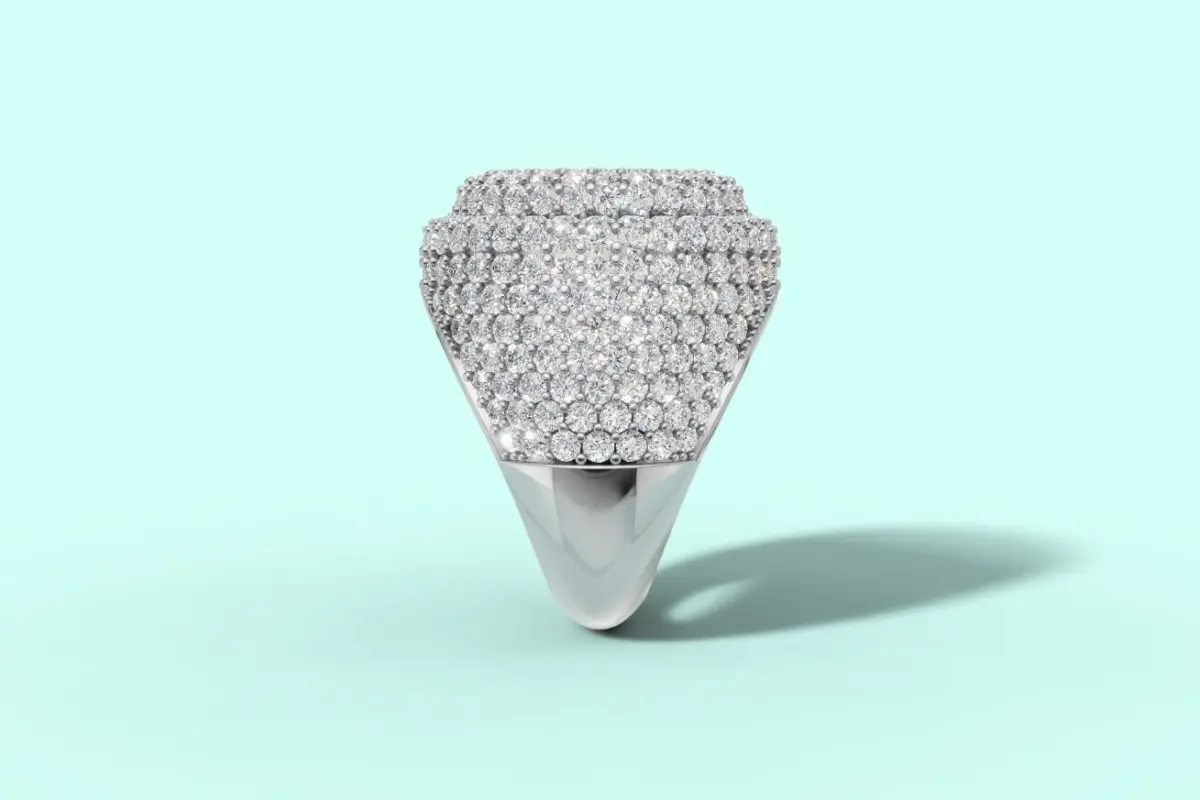 Unleash your inner royalty with the Regal Ice Diamond Dome Ring – a bold statement of luxury and elegance. Crafted in lustrous white gold (or platinum), this striking piece is fully encrusted with brilliant-cut diamonds, meticulously pavé-set to form a dazzling dome of uninterrupted sparkle. The multi-layered design adds depth and dimension, while the smooth inner band ensures comfort with every wear. Perfect for those who live loud and shine brighter, this ring is more than jewelry – it's a declaration.