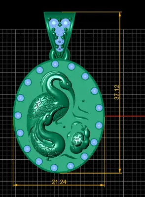 This stunning pendant design showcases a pair of elegant cranes, artistically sculpted in a yin-yang-inspired composition, surrounded by a ring of brilliant-cut diamonds. The scene also includes a delicately modeled lotus flower, symbolizing purity and tranquility. The crane, a revered symbol of longevity and grace, is masterfully rendered with intricate feather detailing, giving the piece depth and sophistication.
