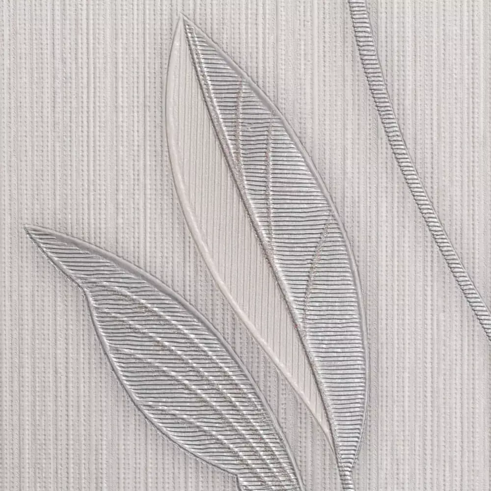 Elevate living rooms and bedrooms with a refined botanical wallpaper featuring slender leaves in layered silver and pearl tones on a soft linen‑textured ground. Raised embossing outlines every leaf and vein, adding tactile depth that catches light with a subtle metallic glow while remaining calm and sophisticated. The vertical vine layout draws the eye upward to visually increase ceiling height, making it ideal for cozy spaces or statement feature walls behind sofas and beds. Pair with dove‑gray upholstery, ivory woods, and brushed nickel accents for a serene, contemporary‑classic palette that photographs beautifully. Use across a full room for hotel‑suite polish or combine with coordinating plain textures on adjacent walls to balance pattern and maintain openness. The neutral sheen harmonizes with warm and cool décor alike, supporting seasonal swaps without clashing. Perfect for modern apartments, guest rooms, and lounges seeking understated luxury with organic movement.