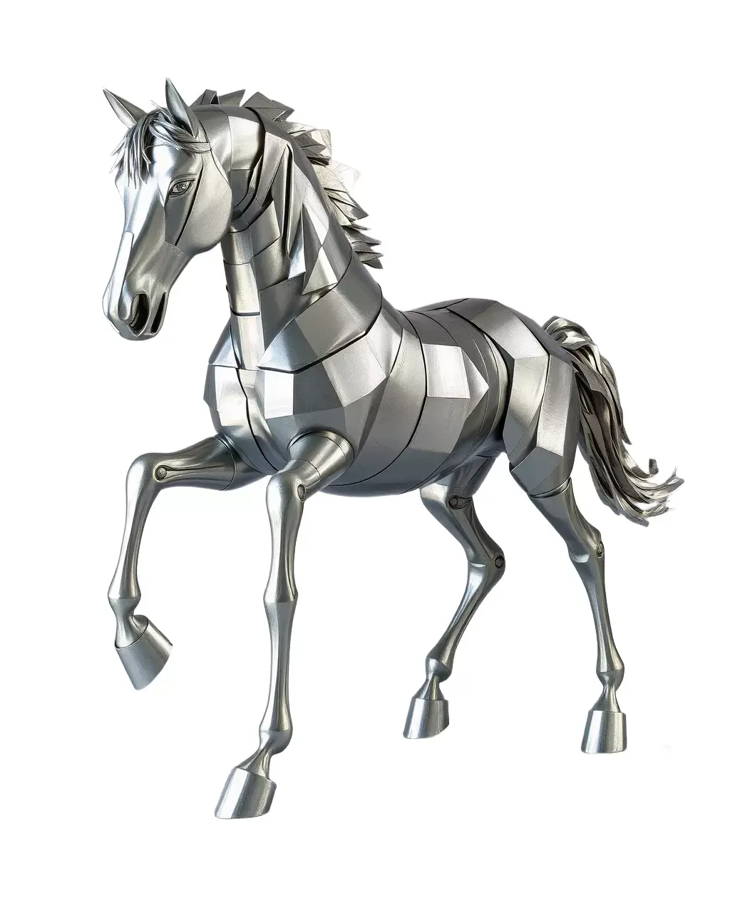 The Silver Mechanical Horse model pack offers a unique, futuristic twist on a classic equine form. With its sleek silver metallic finish and intricate design, this model is perfect for sci-fi and fantasy projects. Each model has 3 levels of detail: low-poly (1000 triangles for mobile), middle-poly (10,000 triangles for environment), and high-poly (100,000 triangles), allowing for use in production rendering, game engines, and interactive presentations based on the LOD System principle. Ideal for use in animation, virtual reality, and theme park simulations. The model's textures are PBR, including Diffuse, NormalMap, and reflection/roughness/metallic, compatible with any modern rendering engine. All models are accurately unwrapped with no overlapping UVs. All textures are 4096*4096 in size. If you enjoyed this model, please like and leave a comment!