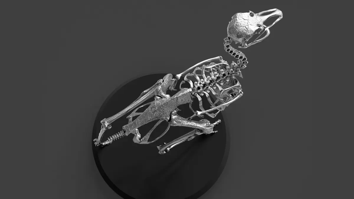 This is a highly detailed Silver Ostrich Skeleton 3D Model designed for artistic visualization, concept art, and creative projects. The metallic silver finish enhances the aesthetic appeal, making it suitable for gallery presentations, digital artwork, or surreal compositions. The model accurately represents the skeletal structure of an ostrich, with a focus on elegance and artistic flair.