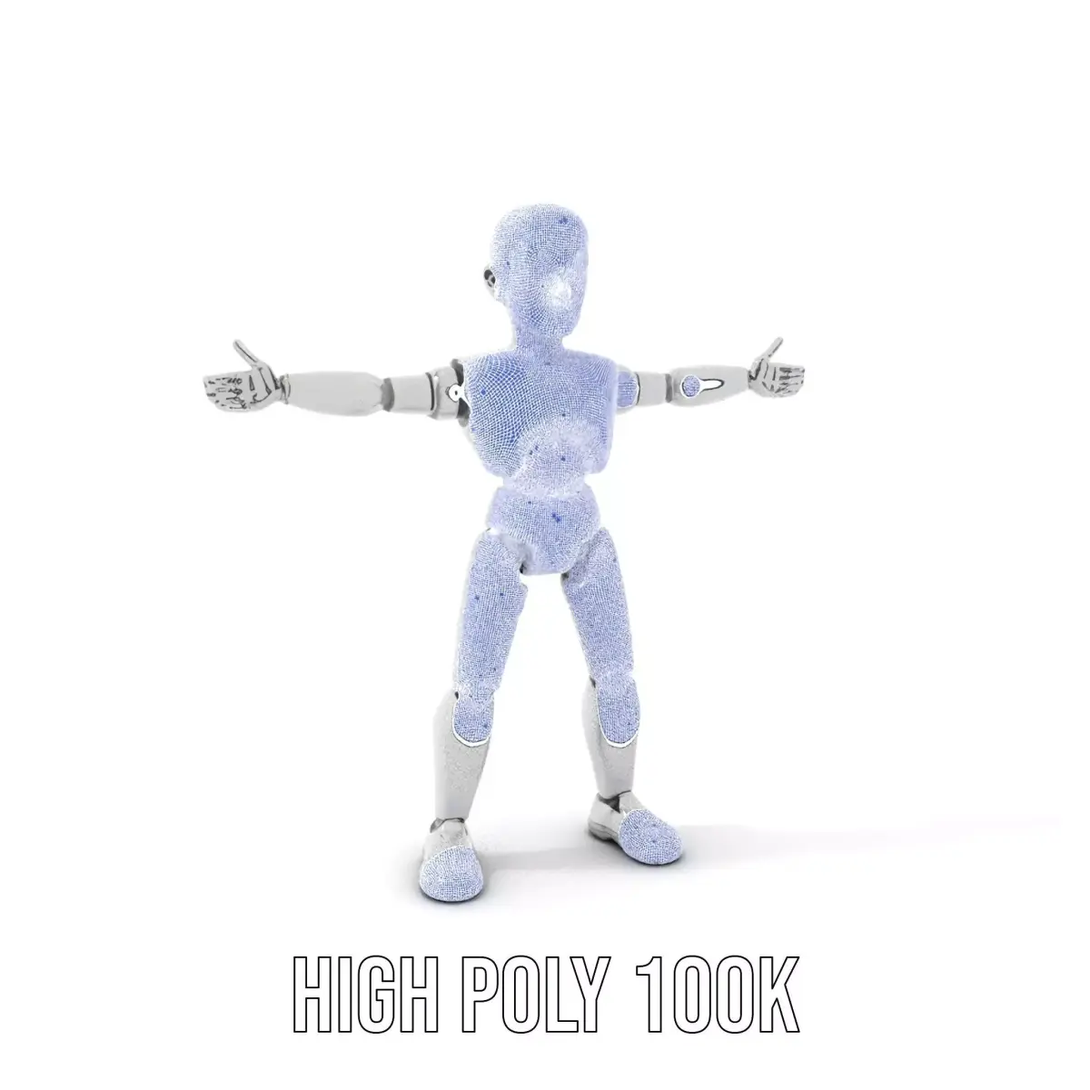 This Silver Robot Humanoid model pack is a highly versatile asset designed for futuristic and robotics-themed projects. Each model has 3 levels of detail: low-poly (1000 triangles for mobile), mid-poly (10,000 triangles for environments), and high-poly (100,000 triangles), making it suitable for production rendering, game engines, and interactive presentations. Its PBR textures include Diffuse, NormalMap, and reflection/roughness/metallic maps, all at 4096x4096 resolution, ensuring compatibility with modern rendering engines. The model is meticulously unwrapped with no overlapping UVs, allowing for precise texturing. Ideal for use in sci-fi movies, video games, and virtual reality experiences. Please like and comment if you enjoy this model!