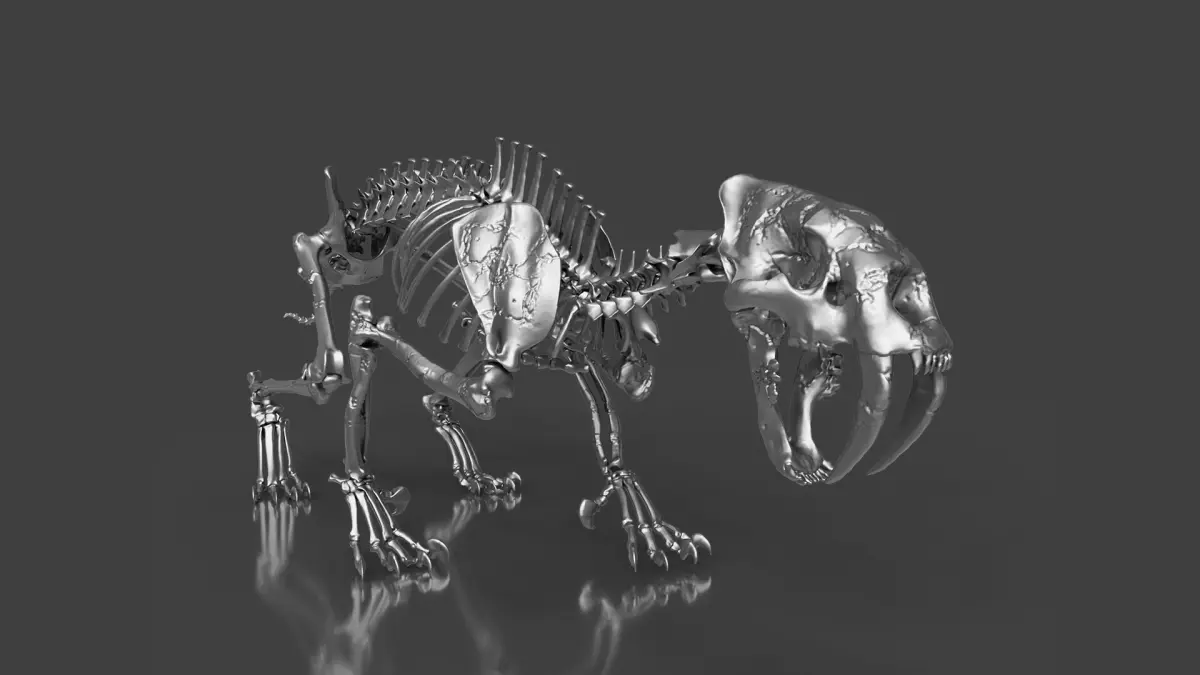 This Silver Metal Sabretooth Skeleton 3D Model is designed for artistic visualization, modern concept art, and high-end design displays. The polished silver surface enhances the artistic appeal, making this model ideal for gallery installations, creative 3D artwork, or unique visual projects.
