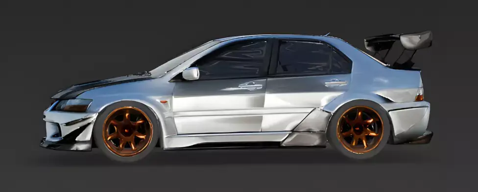 The Overall Concept This asset is a high-performance sports sedan, heavily inspired by rally legends like the Mitsubishi Lancer Evolution. It is designed as a street weapon, blending daily drivability with track-ready speed and aggression.