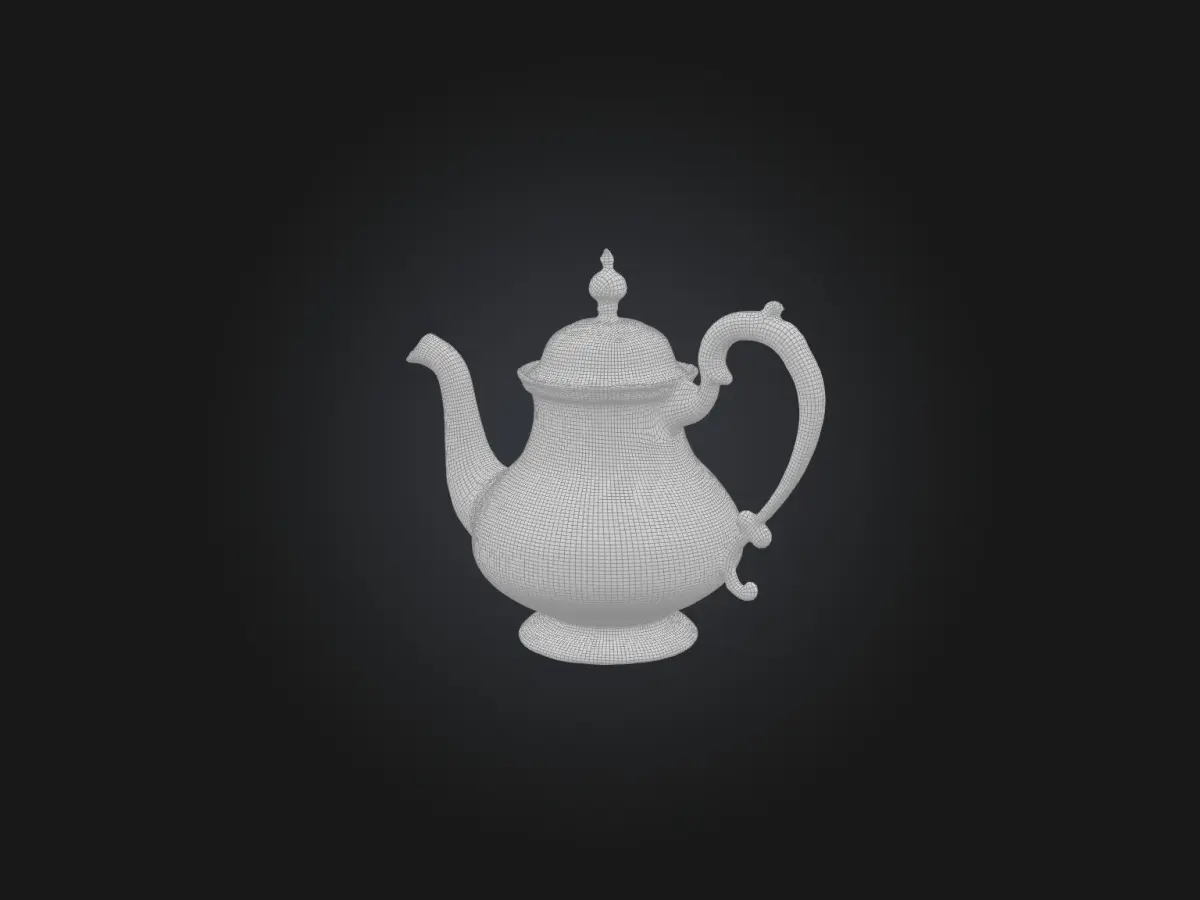[3D model, silver teapot, high-quality, rendering, animation, game asset, blender, fbx, obj, stl, glb, usdz]
