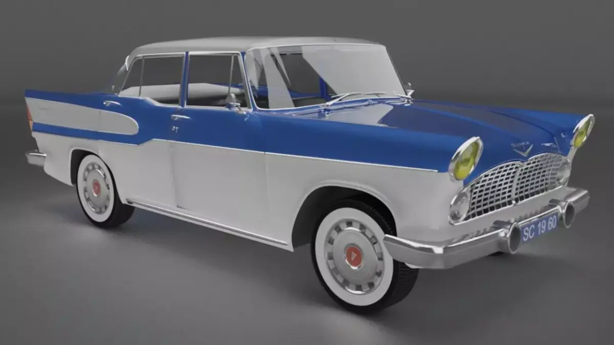 High detailed 3D model of a 1960 Simca Vedette Chambord 2.3L Side-Valve V8 Car.