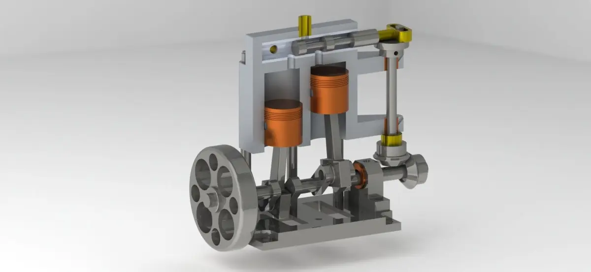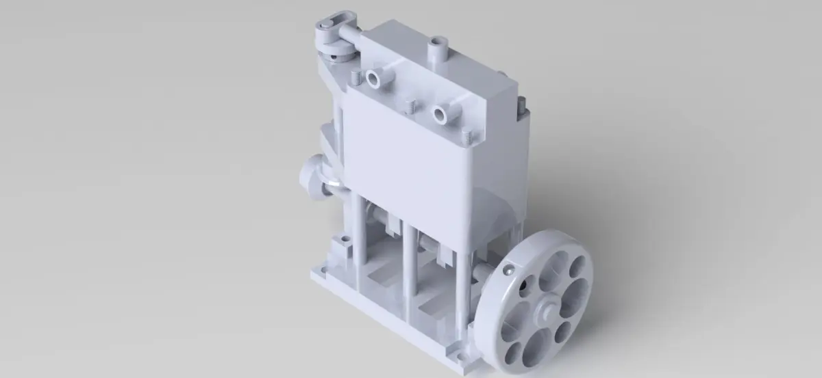 #SolidWorks#letsmakeitcadA simple 2-cylinder vertical steam engine is a basic mechanical device that converts steam pressure into rotational motion. Here's a description of how it works: