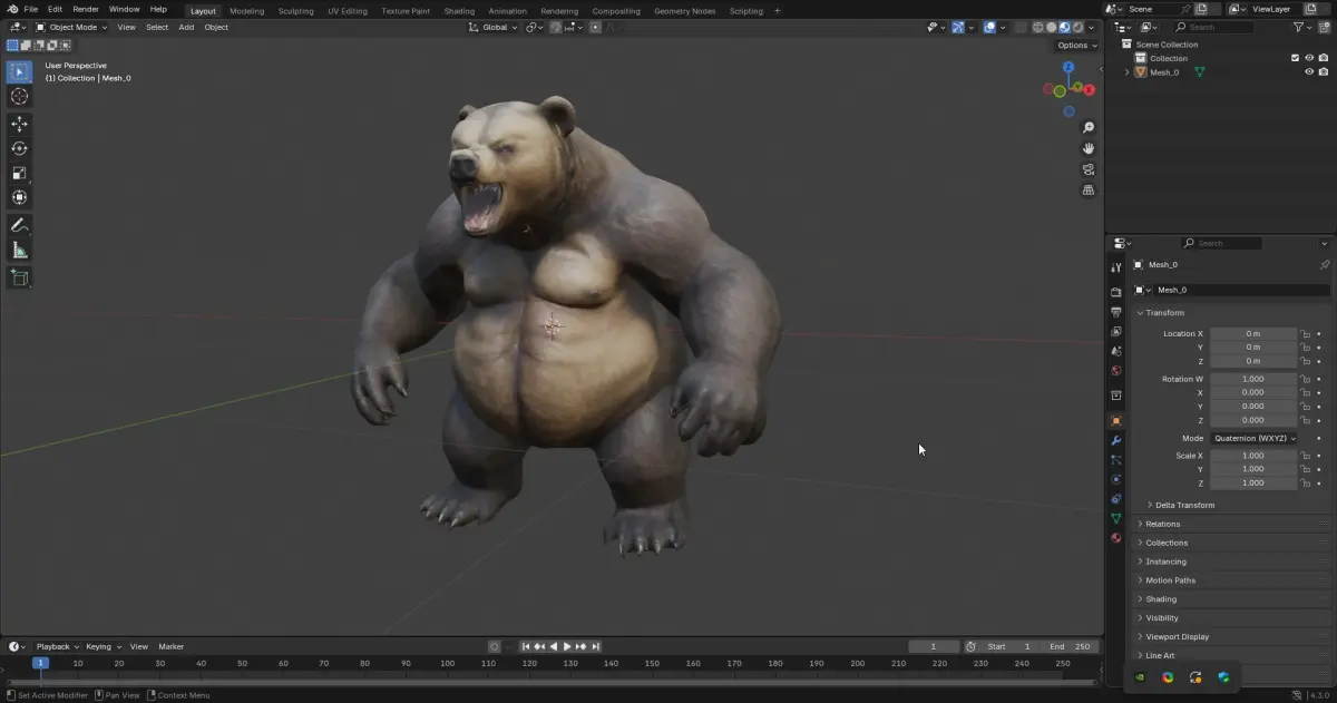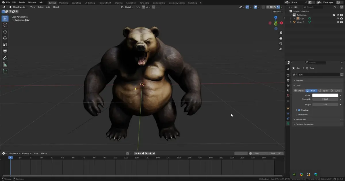 A simple anthropomorphic bear with an aggressive stance, sharp features, and bold expressions. Its detailed texture adds depth and realism, making it ideal for games or various creative applications where an anthropomorphic animal is needed.