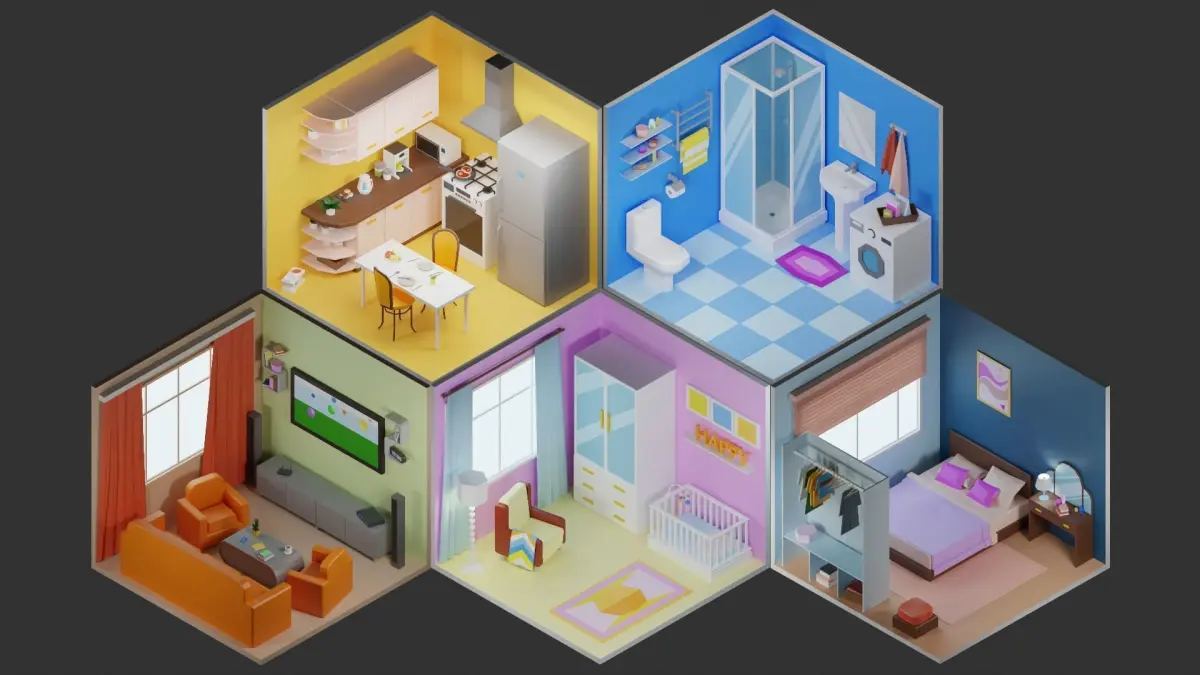 3d model/low poly/house/apartment/room/interior/furniture/appliances/fittings/dizain/design/vizualiztion