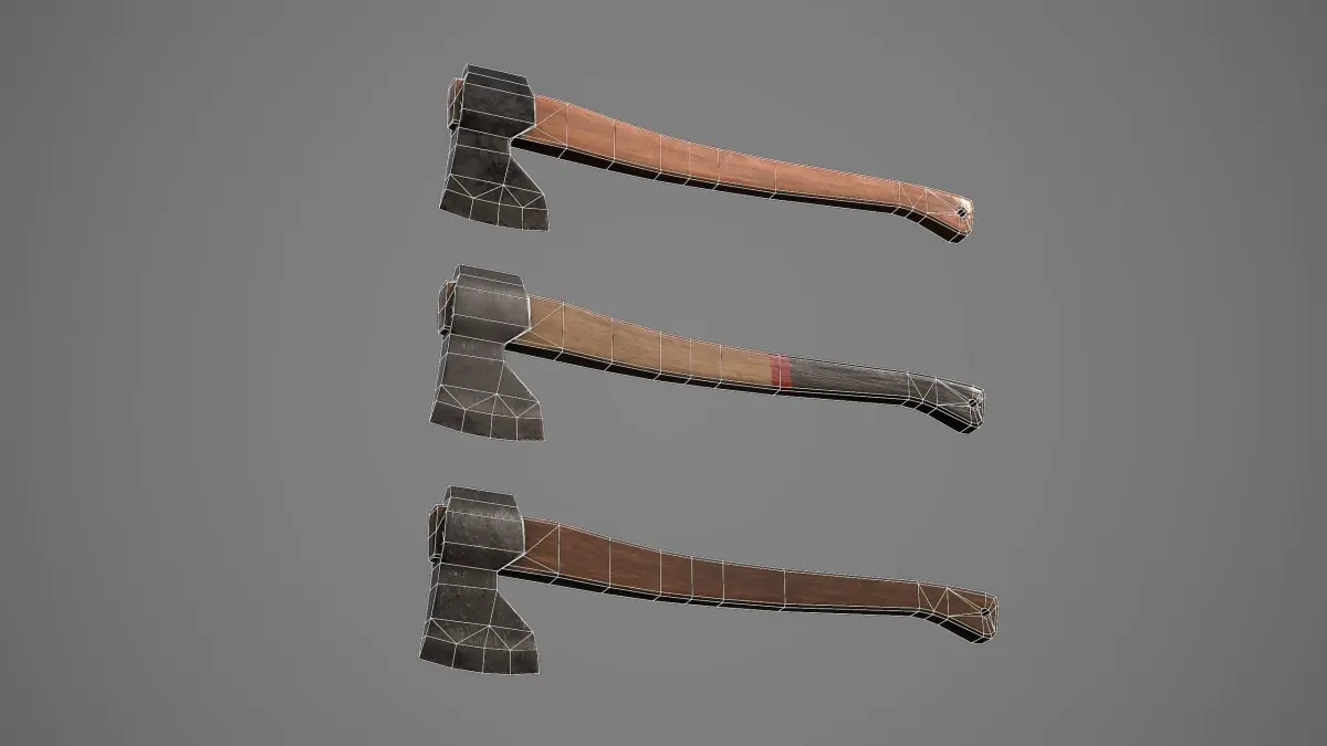 Low poly model of Axe (Felling Hatchet) with 3 sets of different PBR materials with good size and proportions ready to use in your game.textures preset ready to import to unity 3D