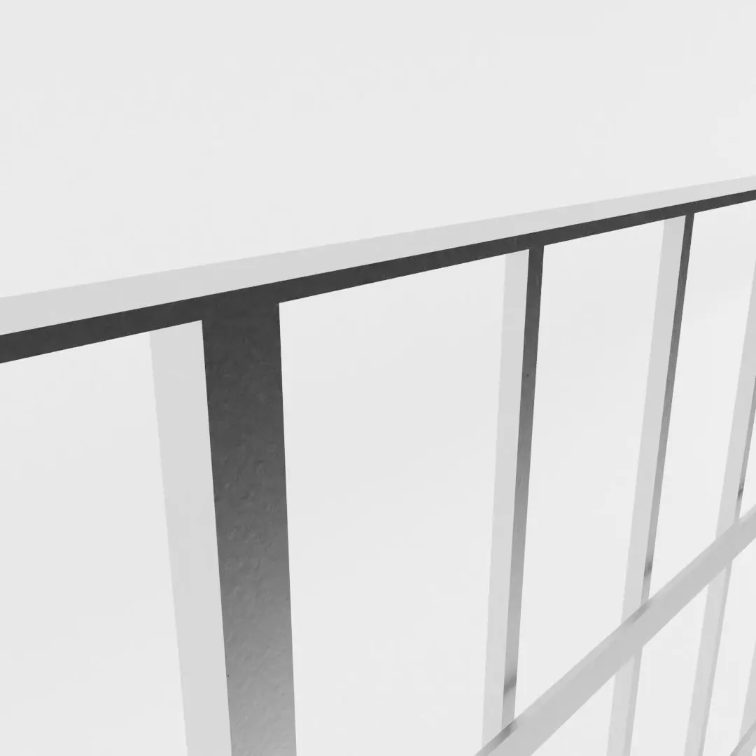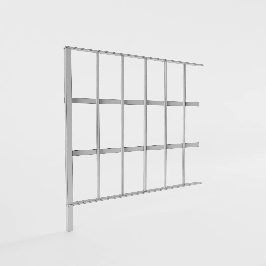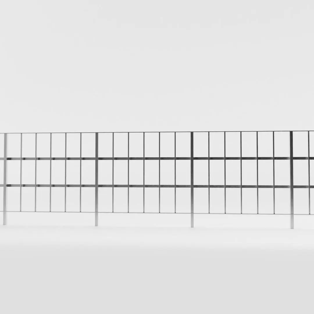 This model has real world scale and measures 4 cm in depth, 101 cm in height and 102 cm in length. The railing unit can be copied and further lined up as shown in the second preview image.