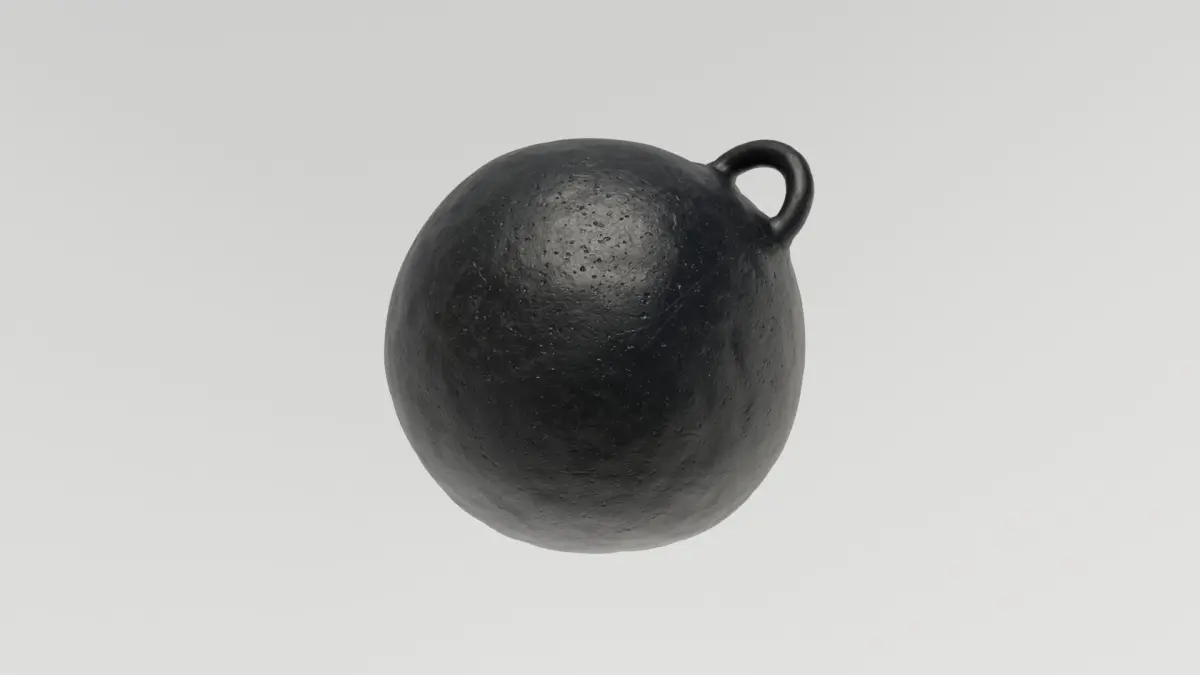 Simple ball and chain model with separate ball, chain links and shackle. Great for medieval dungeon setting or old-timey prison scene.