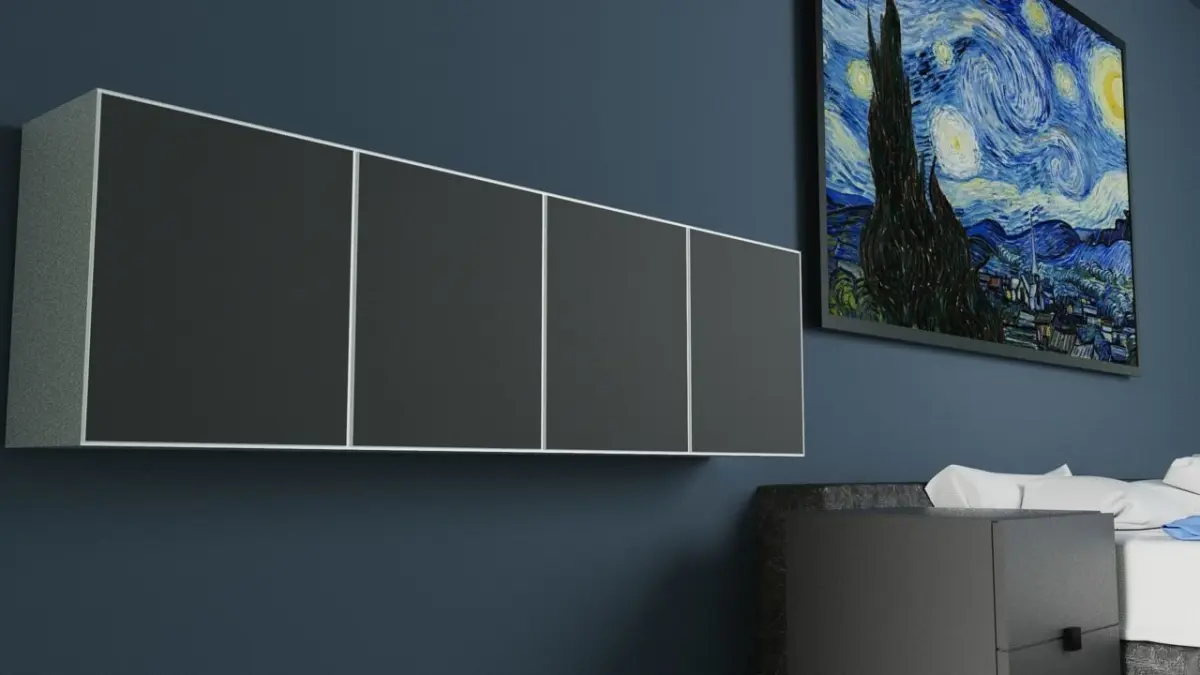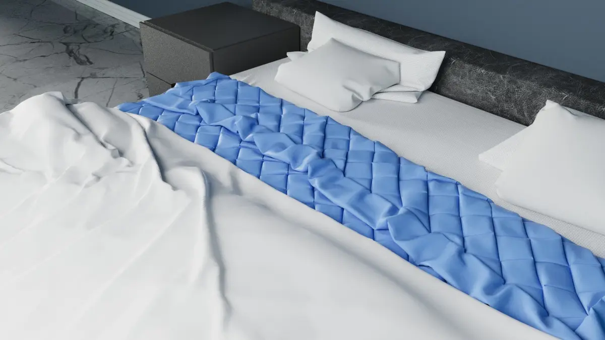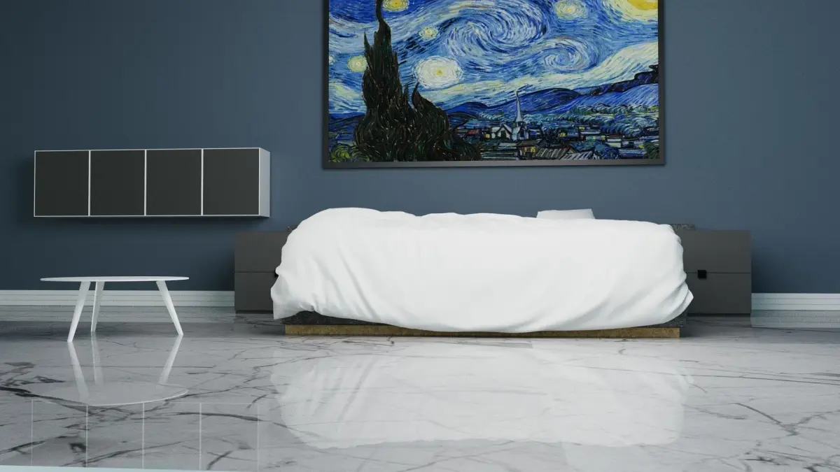 this is a 3D minimal clean bedroom this scene includes a modern bed with tables and bookshelf this model has polygons and points everything was modeled in cinema 4d and was rendered in Thea renderer