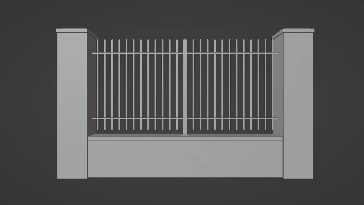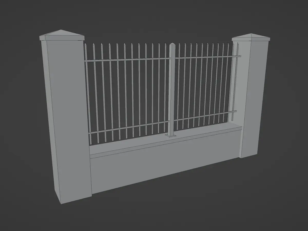 Pillars and center of fence are separate objects so it can be easly merge in longer sections with no overlapping.