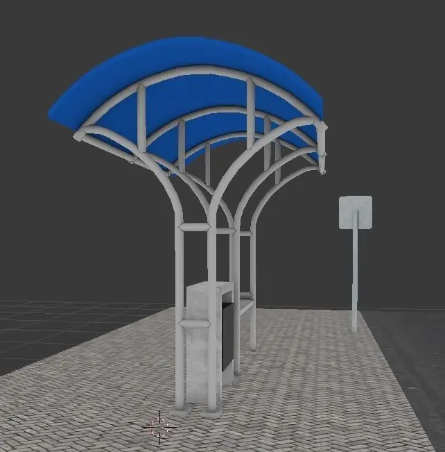 This is a bus stop based on the ones used in some cities of Chile, maybe some other places use the same model or something similar.