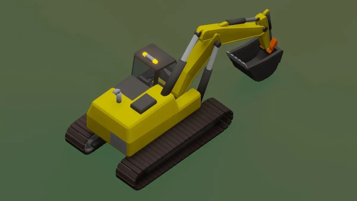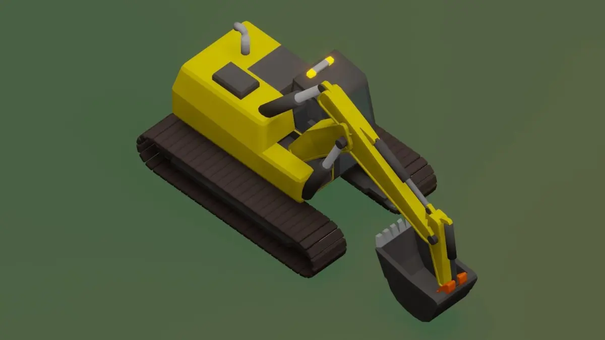 Simple diesel excavator for toon style scenes. Ready for your movies, TV, advertising, ilustrations, or game, etc. The perfect model for isometric illustration and for illustrating materials for the youngest.