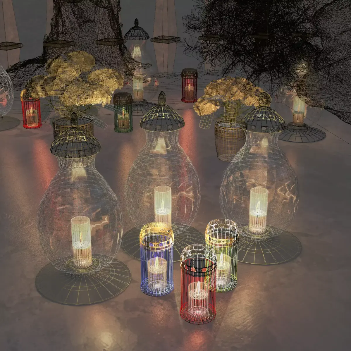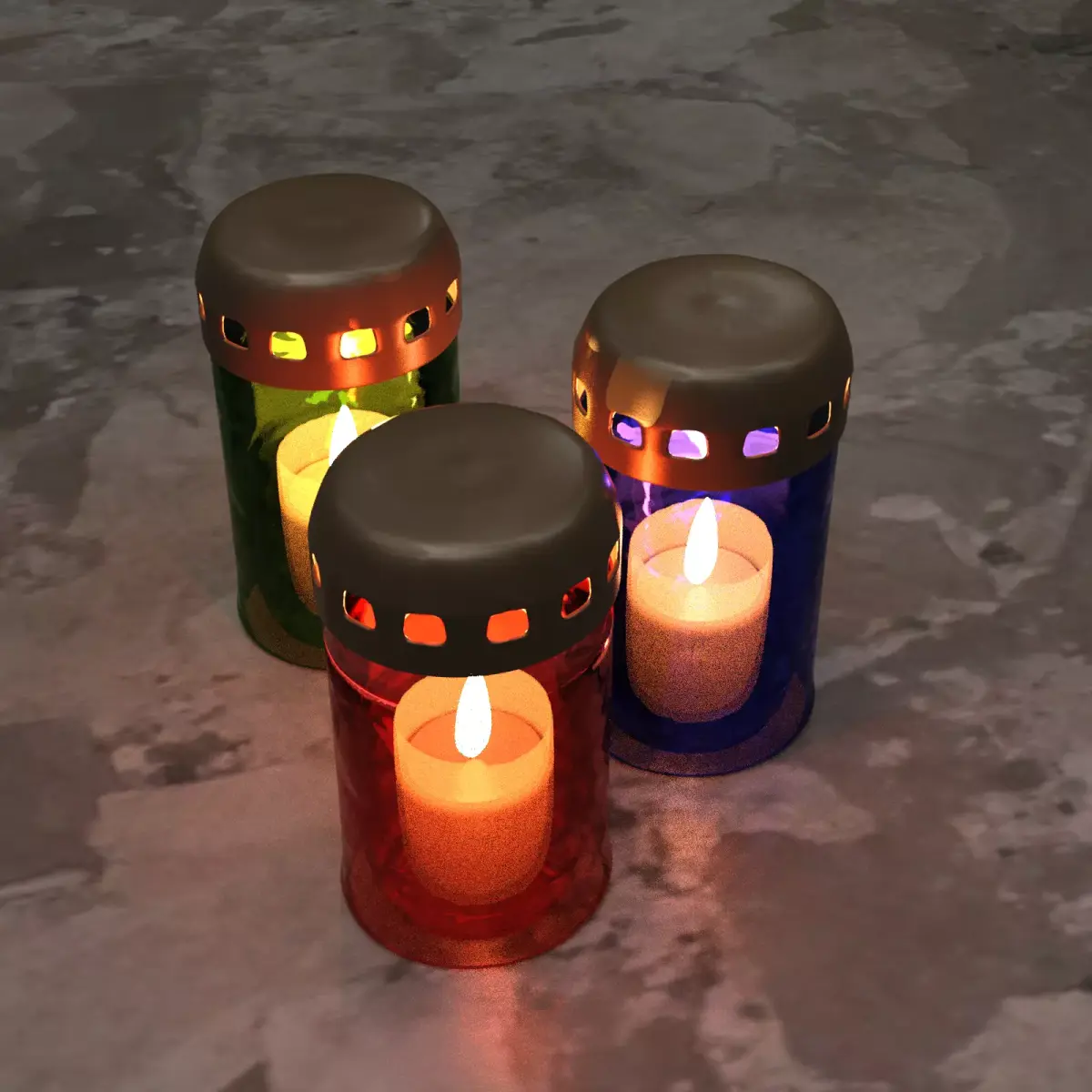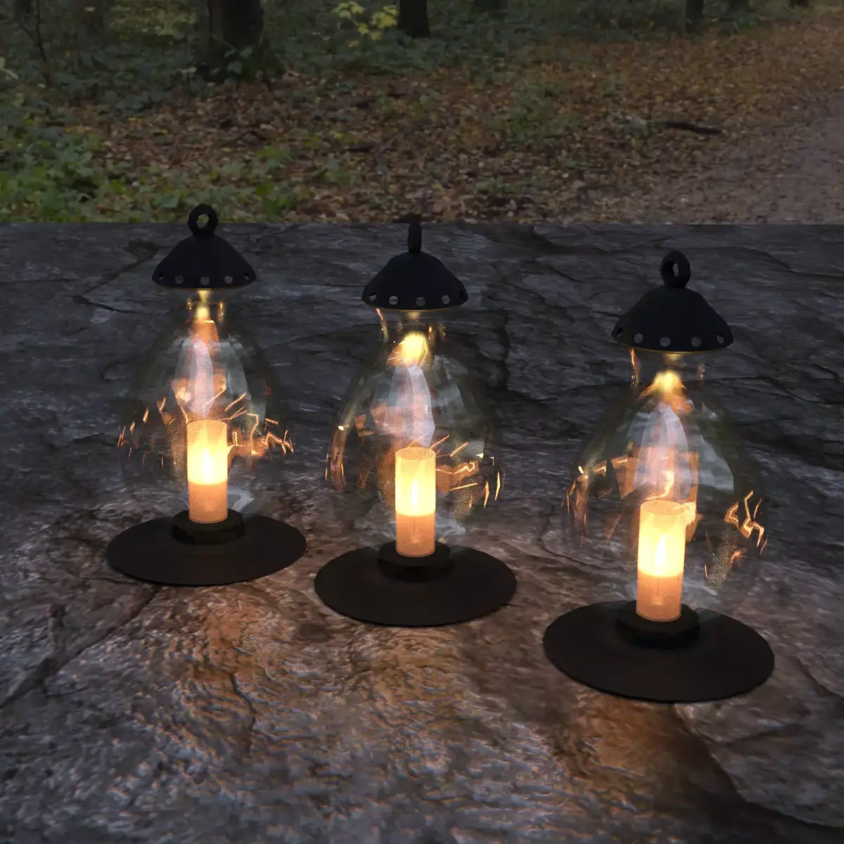 These lanterns capture the authentic atmosphere of European cemeteries – quiet alleys, stone paths, and rows of glowing candles. Perfect for adding a hauntingly beautiful touch to your Halloween scenes. Combine them with flowers, fog, or gothic environments to create that unmistakable, spine-tingling ambience.Bring a touch of atmosphere to your scenes with this set of traditional glass and metal candle lanterns.Whether you need a soft nostalgic glow, a mysterious Halloween mood, or a realistic cemetery setting – these lanterns deliver authentic light and reflections.