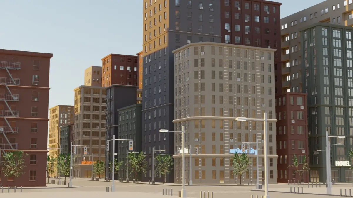 This collection package is made out of 12 different buildings,7 trees and 7 road elements in order to help make cityscapes. Modular sections are easy to piece together in a variety of combinations.The example scene through included in the package! It's readily available to import in Unity3D and Ue4.
