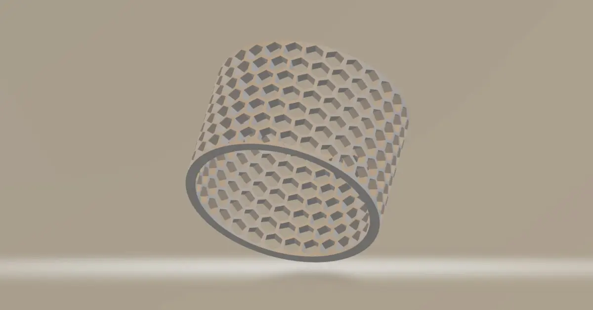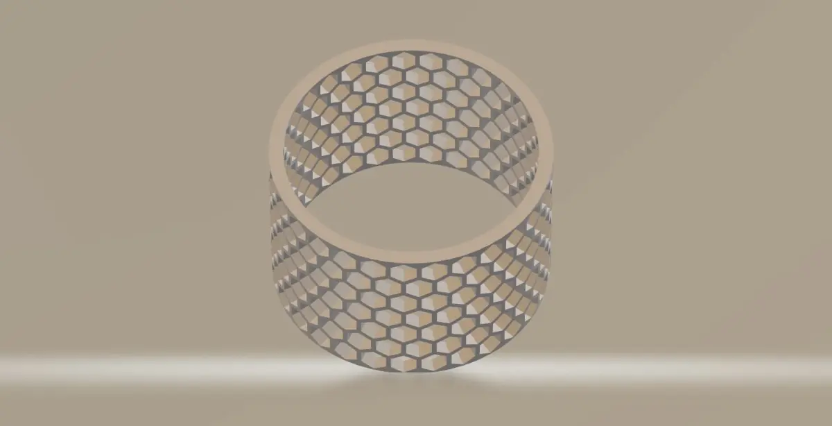 Nice basic shape to start your design around. It is a cylindrical (honeycomb) mesh with hexagons extruded out. Might be useful for some designs such as bracelets , earrings, rings, other jewellery or even some engineering or gadgets.