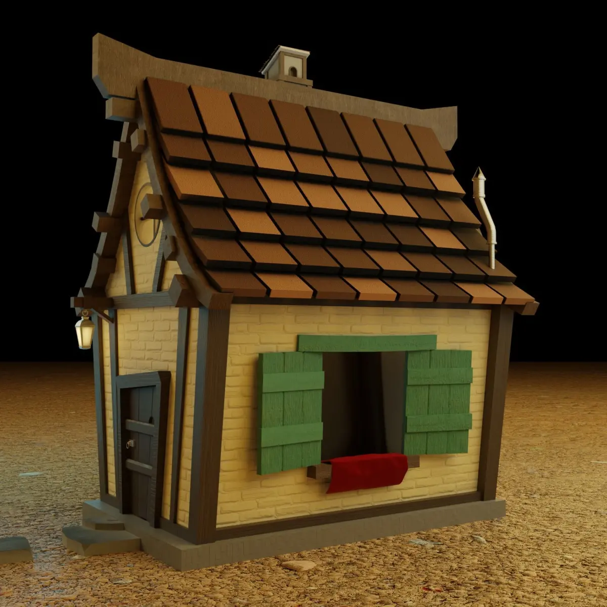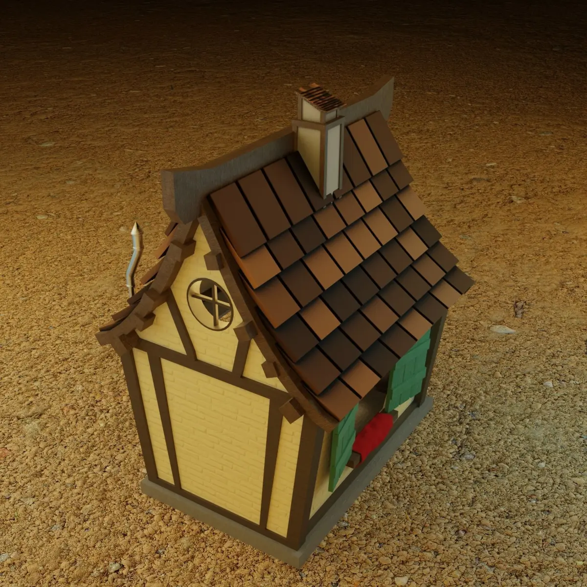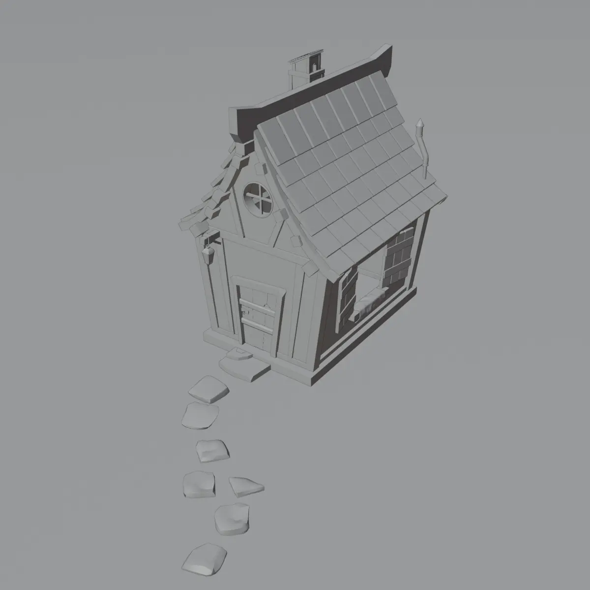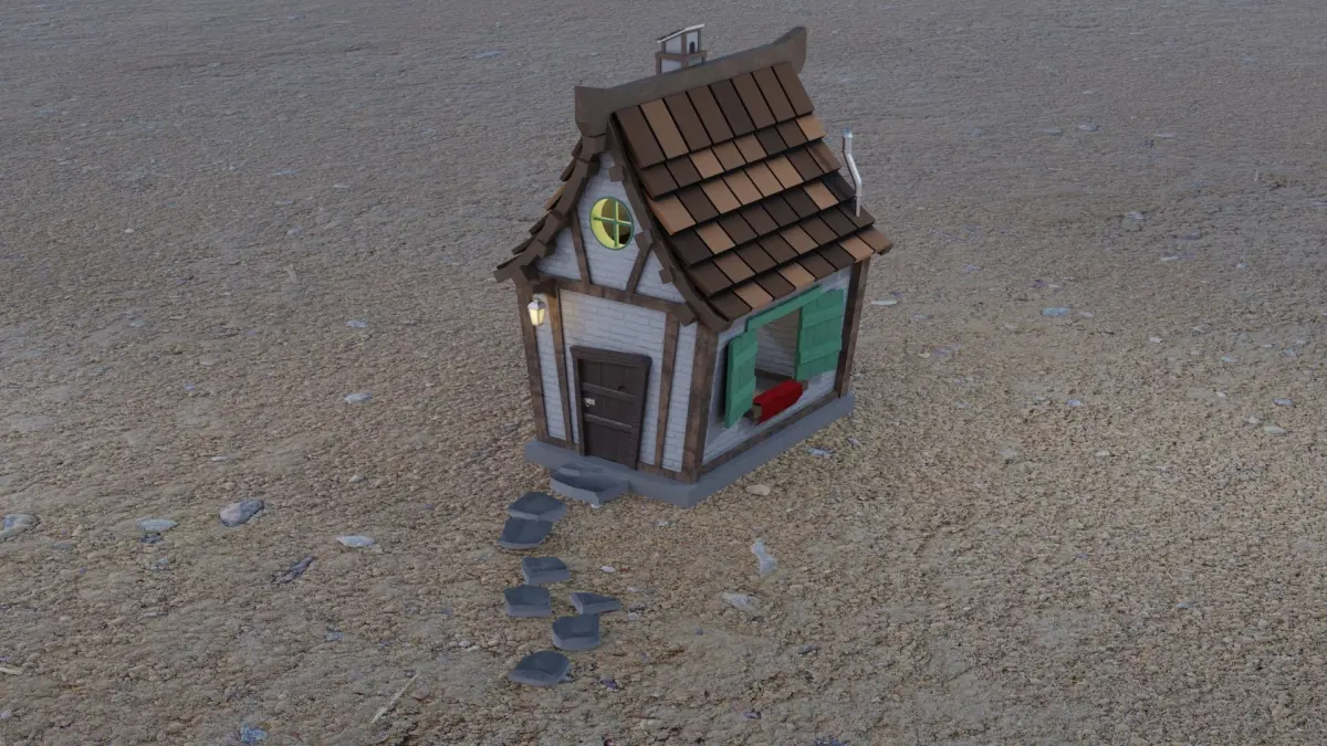 The simple witch house has been designed in Blender 3.2, the blend file has materials and every attached in it, the complete model has been UV unwrapped and can be used for Unity and Unreal Engine,The model has polygonal geometry and mostly using quad geometry