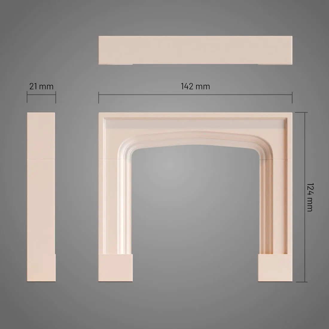The dimensions are: Width = 142mm Height = 124 mm Depth = 21 mm