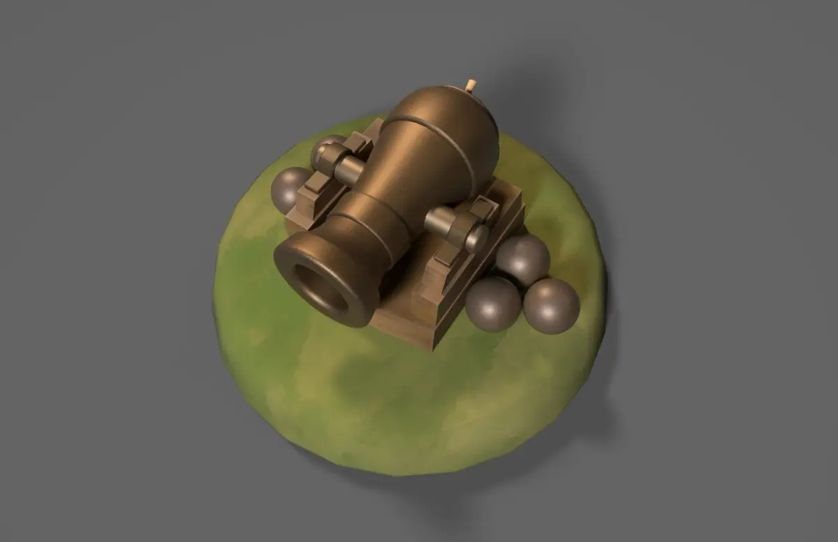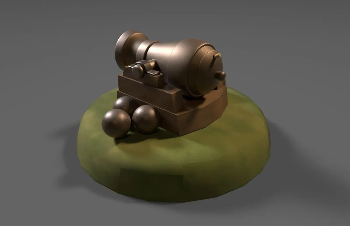 - Isolated cannon has 2810 polygons and 2817 vertices