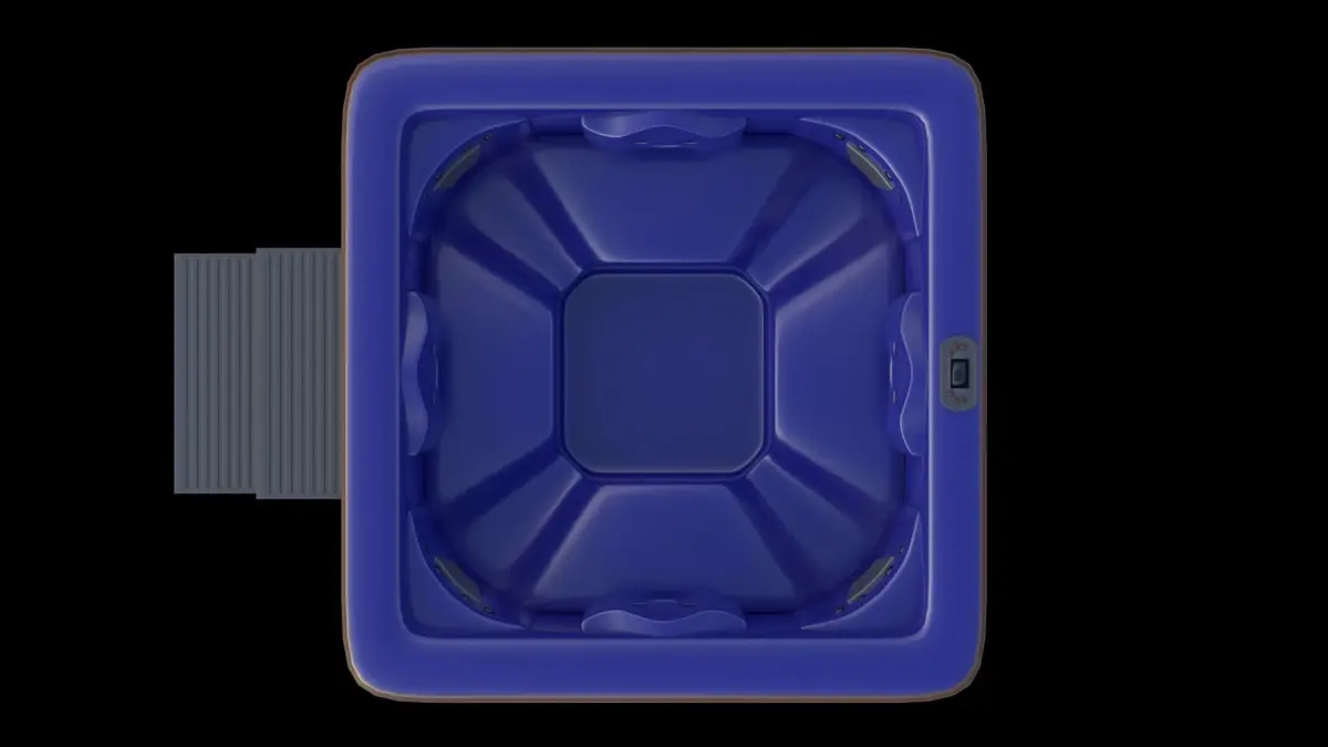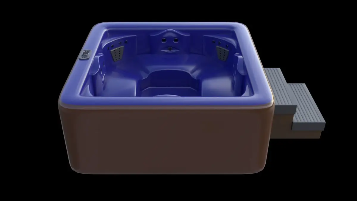 This hot tub will seat up to four people and has several different areas where the jets are located. There is a jet set for each person and another set on each of the corners. Below the corner jets are the drains for the extra water. In the middle it has an area for your feet to relax in.
