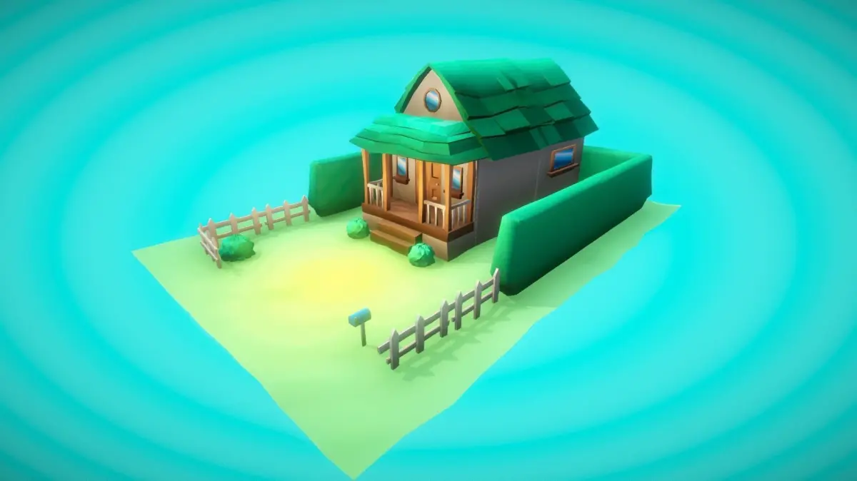 Low Poly Simple House-1 Single Texture Optimized 12.3KB-Game Ready-Modulable-PSD & .jpg texture-13 Assets -Square Window -Round Window -House Entry -Fence -Mail Box -Long Bush -Short Bush -Room 1 -Room 2 -Roof 1 -Roof 2 -Terrain -Door