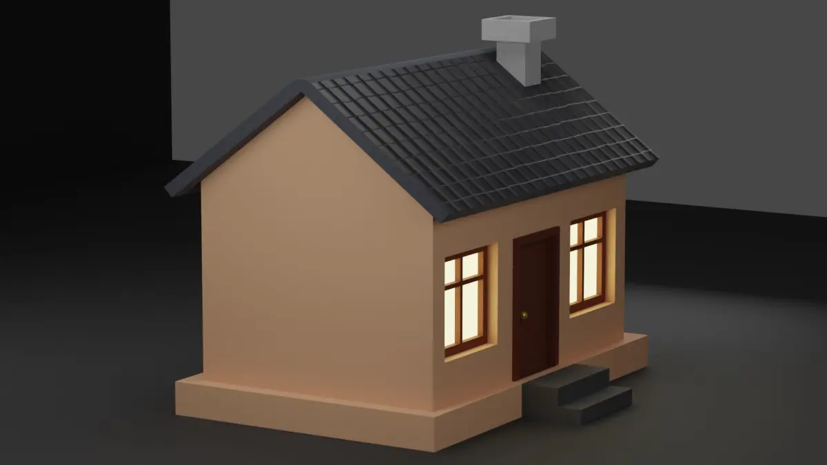 3d model of house, 3d model created using a blender, content includes: