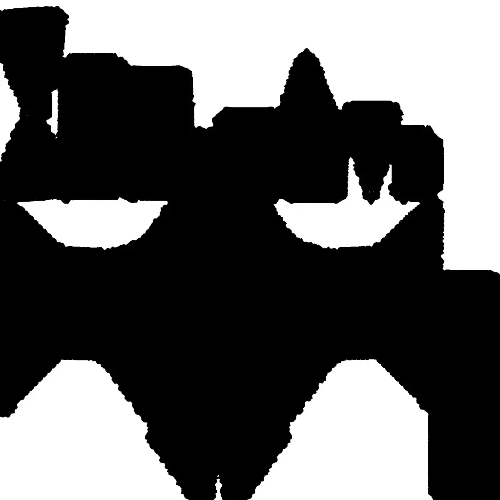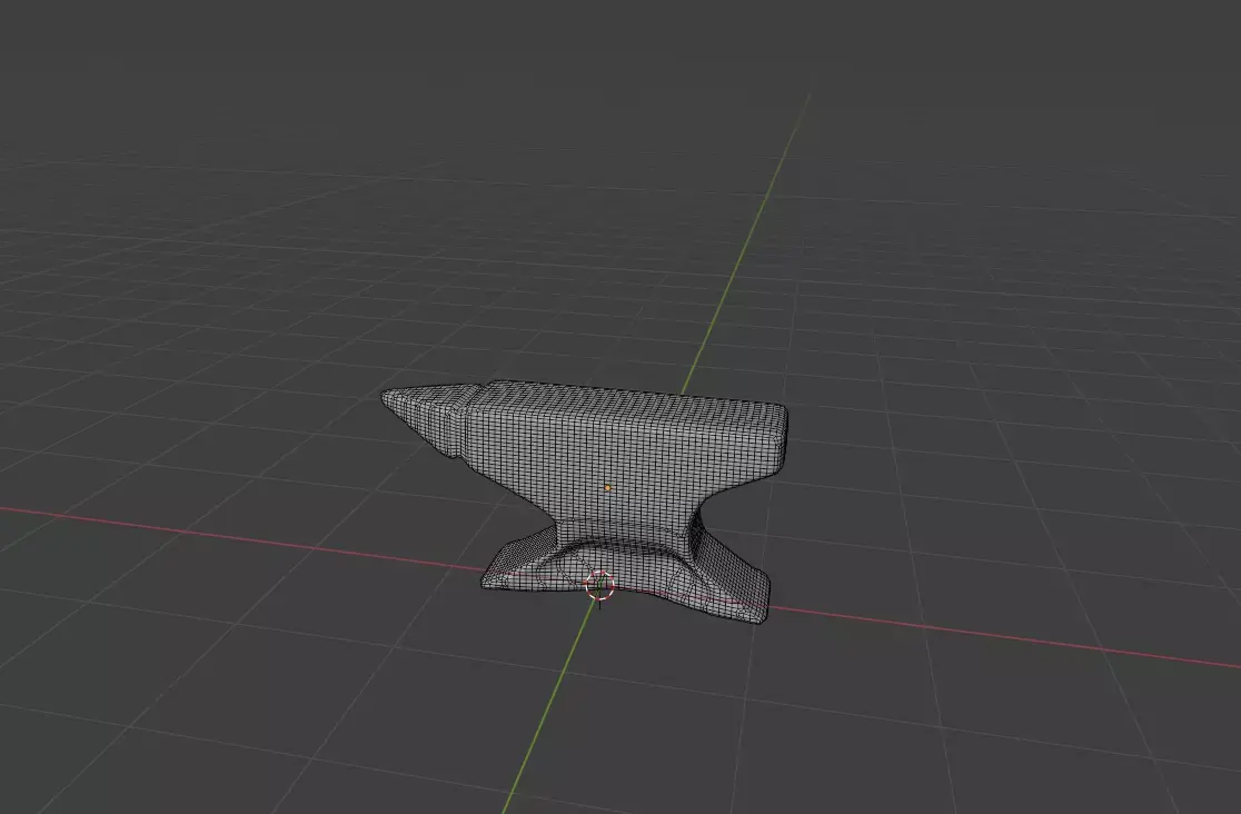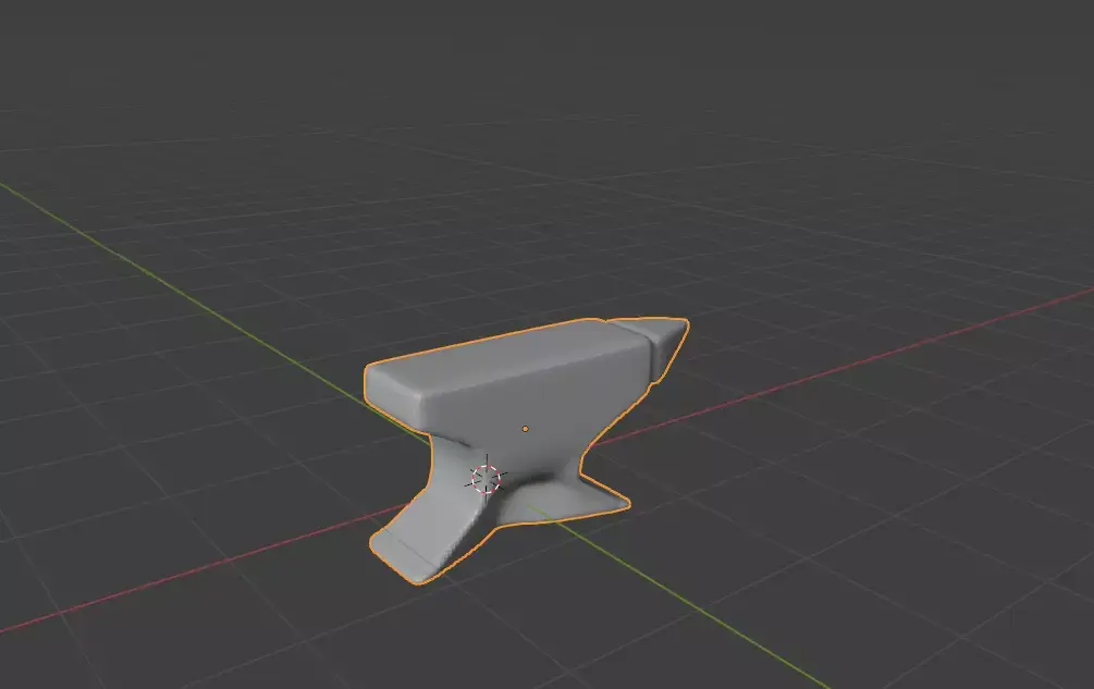 This 3D model depicts a sturdy anvil, rendered in a simple, stylized form. Its silhouette is clean and blocky, with a wide base that tapers upward to support a flat working surface and a pointed horn. The lighting is very low, casting most of the anvil in deep shadow against a plain brown background. This gives it a bold, dramatic presence, though the details of the material are hard to see. It’s an ideal starting point for a blacksmith prop in a medieval or fantasy-themed asset pack, and could be enhanced with brighter textures, metallic reflections, or context props like tools or a forge.