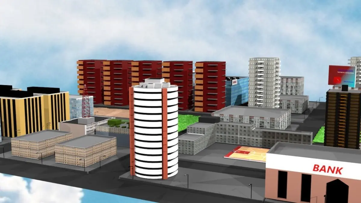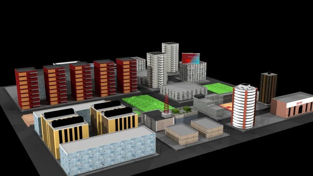 This is a simple low poly 3d city model made using Blender with blender renderer Engine. This will look like an actual city view. All the elements in the model are contains texture.This is city view is based on Bengaluru villa area.