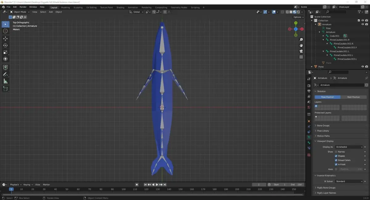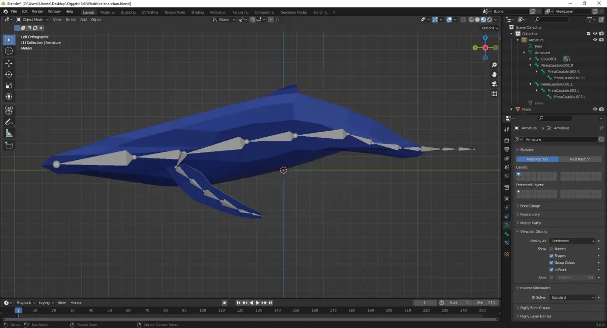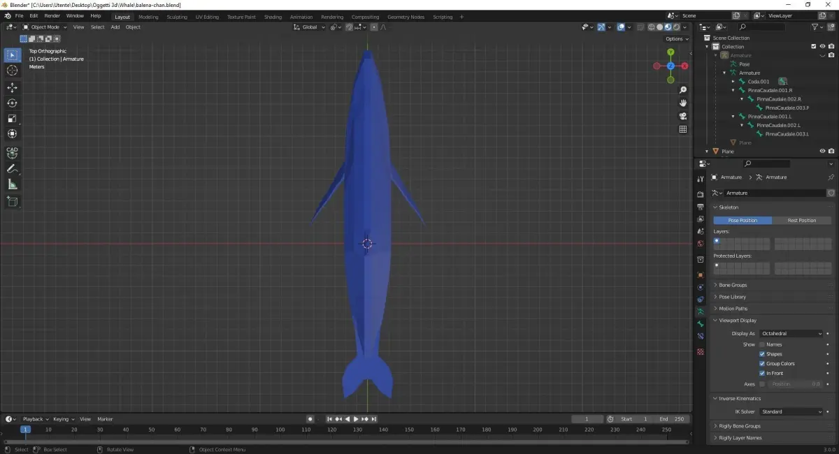 A simple low-poly whale. I made an armature that, in theory, works pretty well. Hope it can help.I've decided to share it for free cause I love free stuff. If you want to thanks me in some way, just give me some advices on how to improve my 3D modeling skills.I'm Italian so please don't judge my english: I'm good in reading, terrible in writing. Have a nice day :)