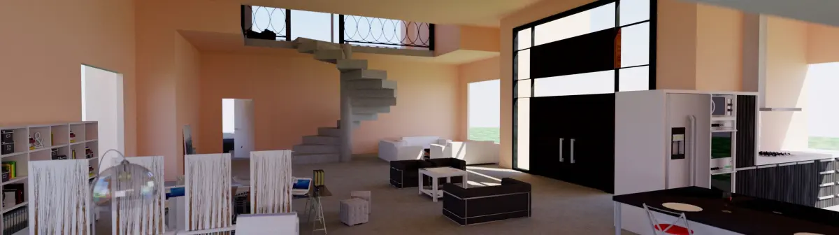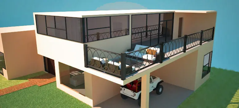 The Modern house style is shown to the fullest. With big modern windows for a bright interior and a cheery look. It has an open feel to make it simple and inspiring. It contains two bedrooms with one bath.