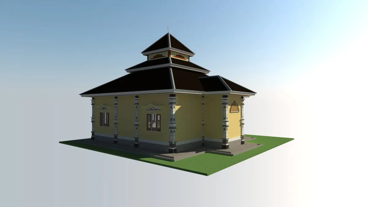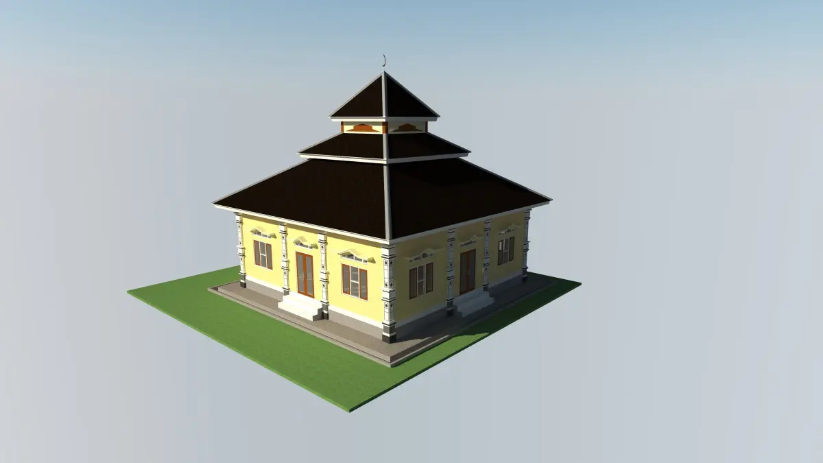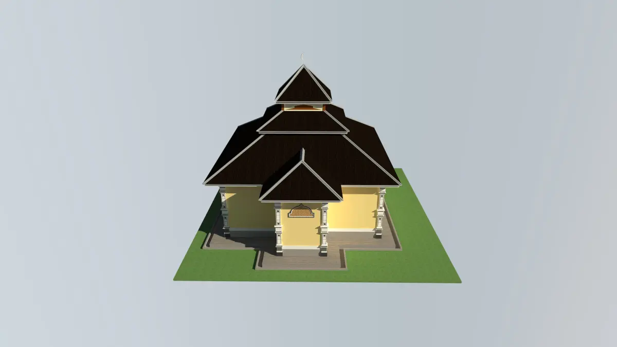 The prayer room measures 8 x 8 M with the addition of simple pillar ornaments, using a terraced pyramid roof.simple drawings and simple autocad format.