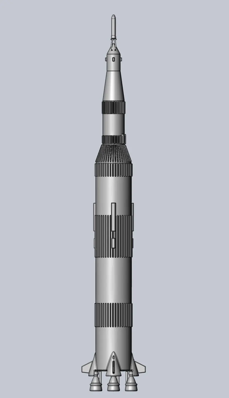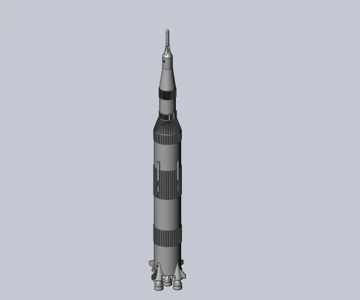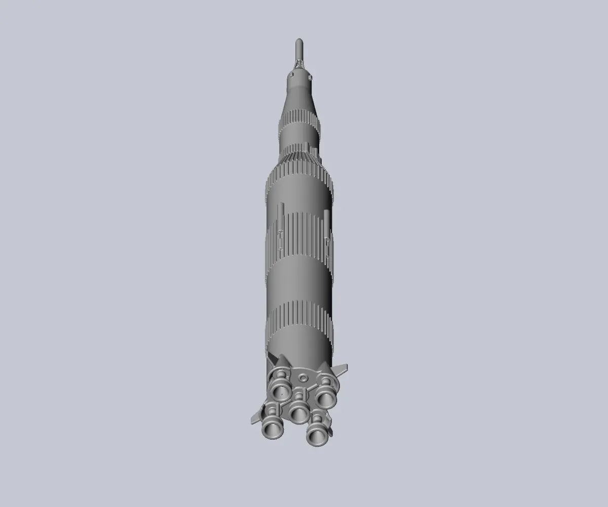 A 3d model of the Saturn V rocket that brought people to the moonthe model is full scale but it is simplified and designed to be scaled down and easily printable anywhere between 1/200 and 1/500larger or smaller scales are also possible but anything far below 1/1000 might run itno printability issues with regular printers and anything farr above 1/100 will lack some detail