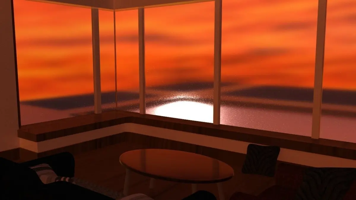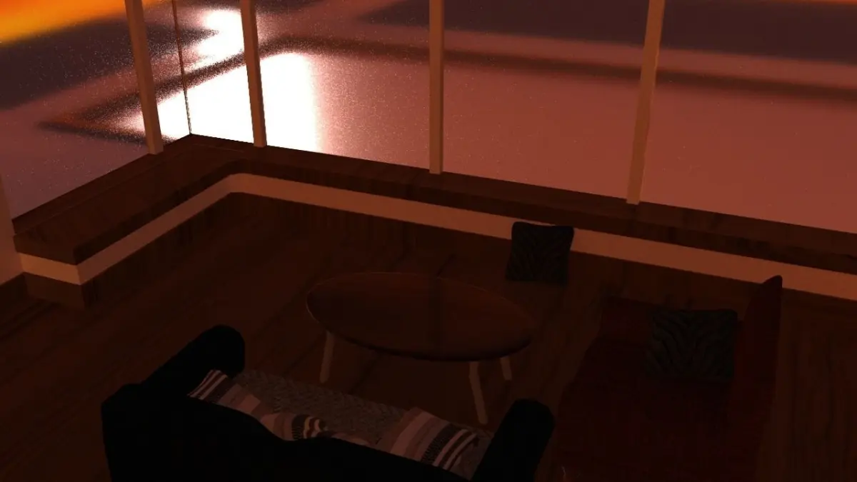 I was going for a solemn mood with this model ,a room with an isolated feel from to rest of the house. The sunset adds warmth to the model but you can use either day or night to get different results. The furniture are just props to bring it all together Also you can attach a larger building to the room. I'm not really8 good at renders so this is what i got.