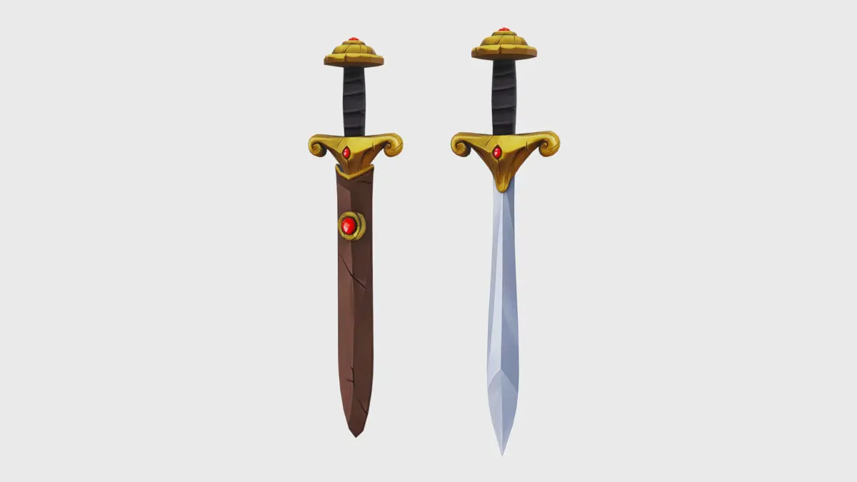 Simple Steel Sword Leather Hilt Scabbard Lowpoly Melee Low-poly 3D model