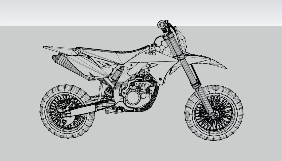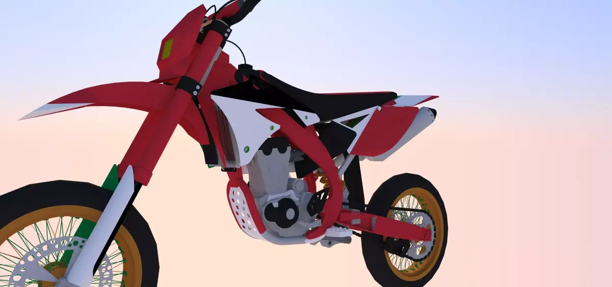 A simple supermoto model based loosely on many different 450cc bikes. Natively from SketchUp, in there it has a cool Italy-themed colorscheme.